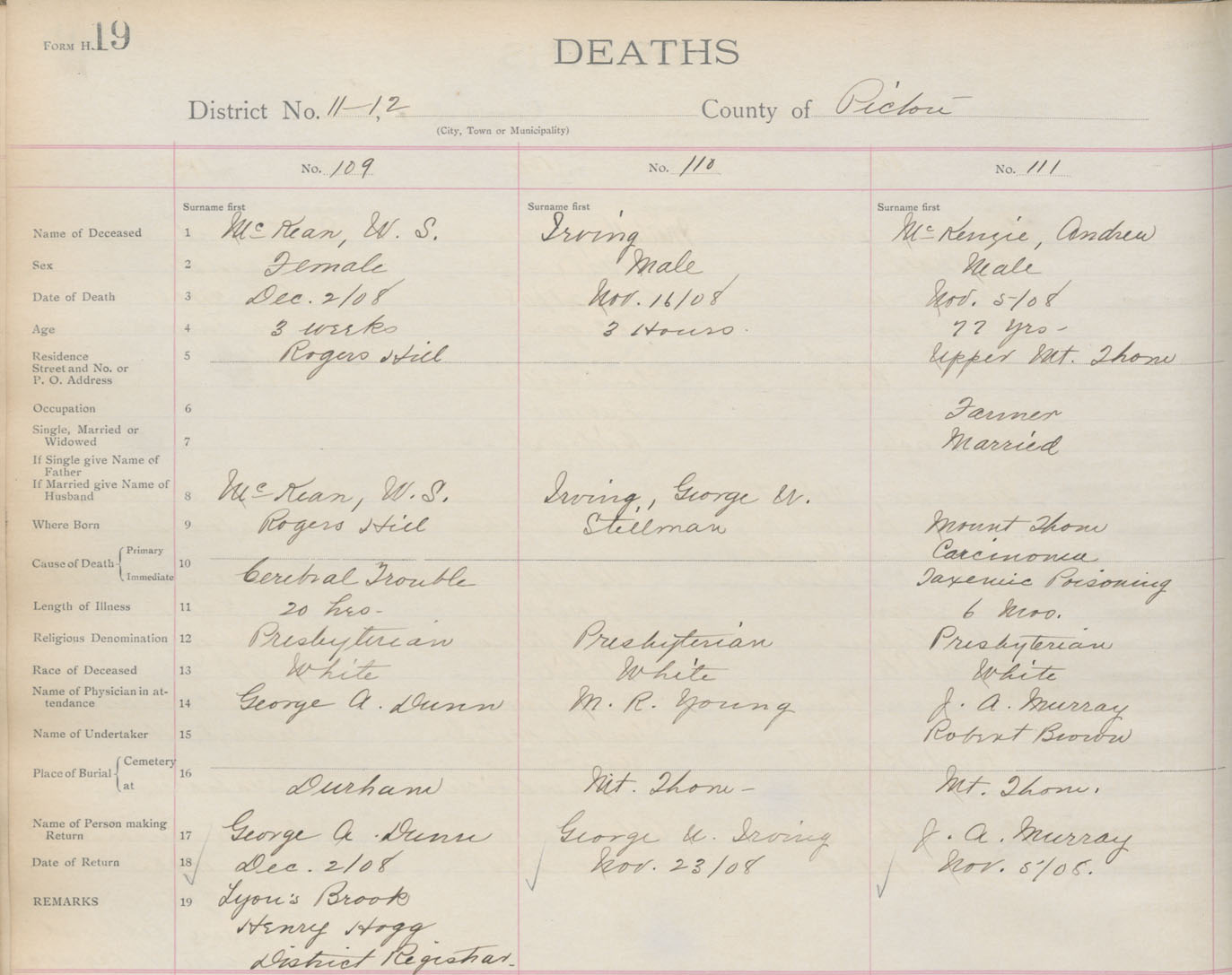 Death Registration: Year: 1909 book: 14 page: 19 number: 111