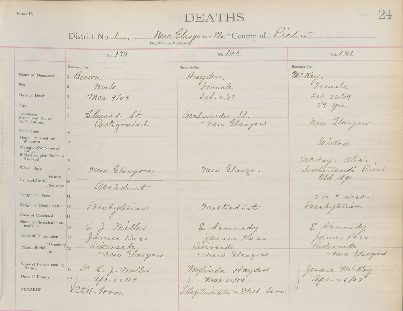 Death Registration: Year: 1909 book: 14 page: 24 number: 141