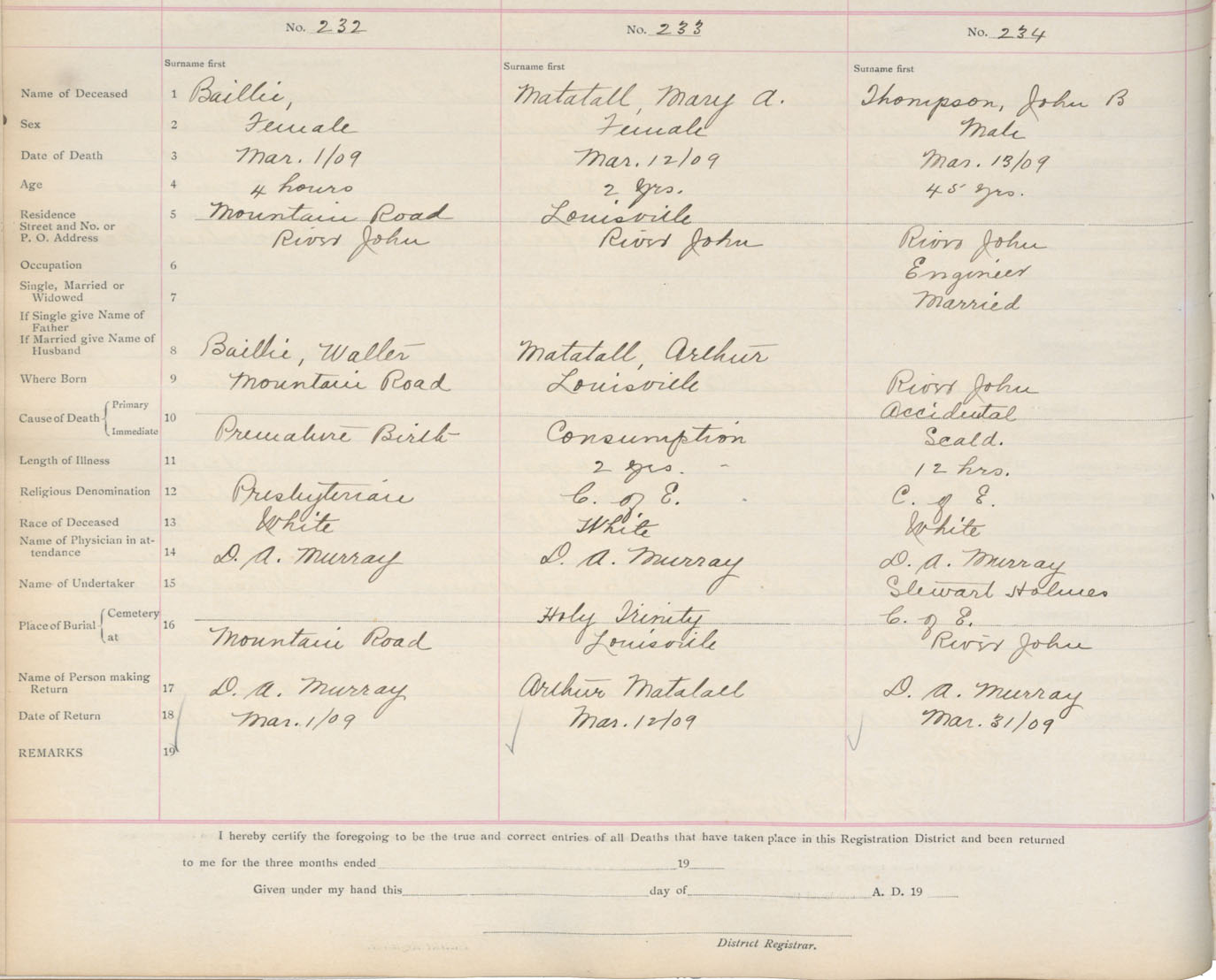 Death Registration: Year: 1909 book: 14 page: 39 number: 234