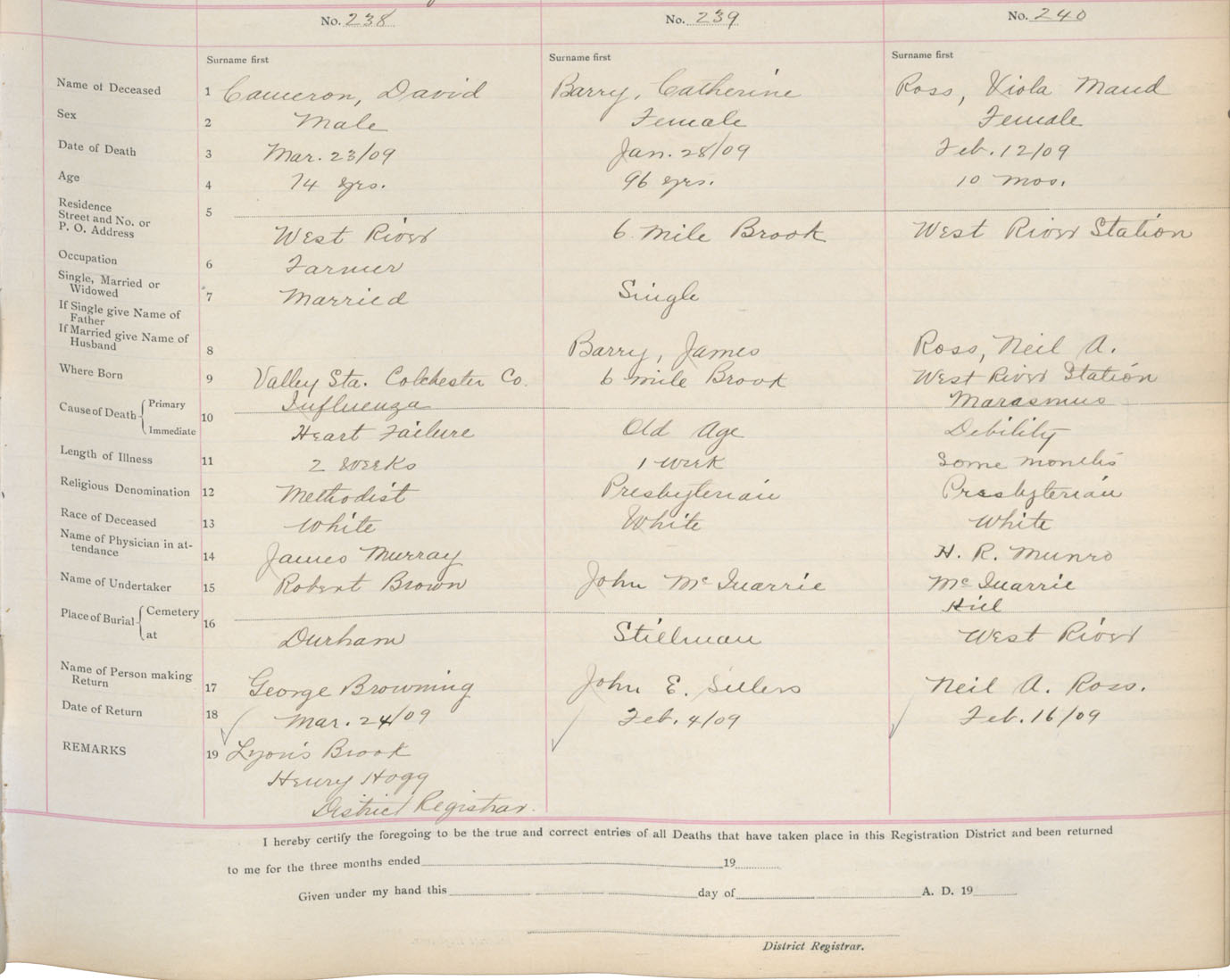 Death Registration: Year: 1909 book: 14 page: 40 number: 240