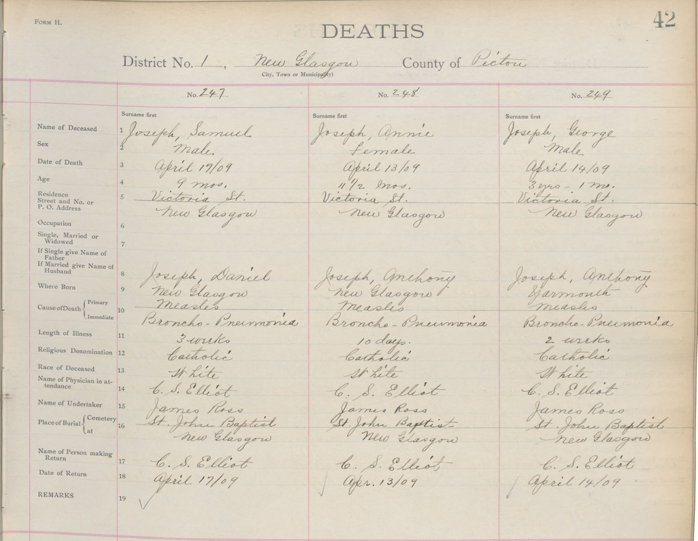 Death Registration: Year: 1909 book: 14 page: 42 number: 249