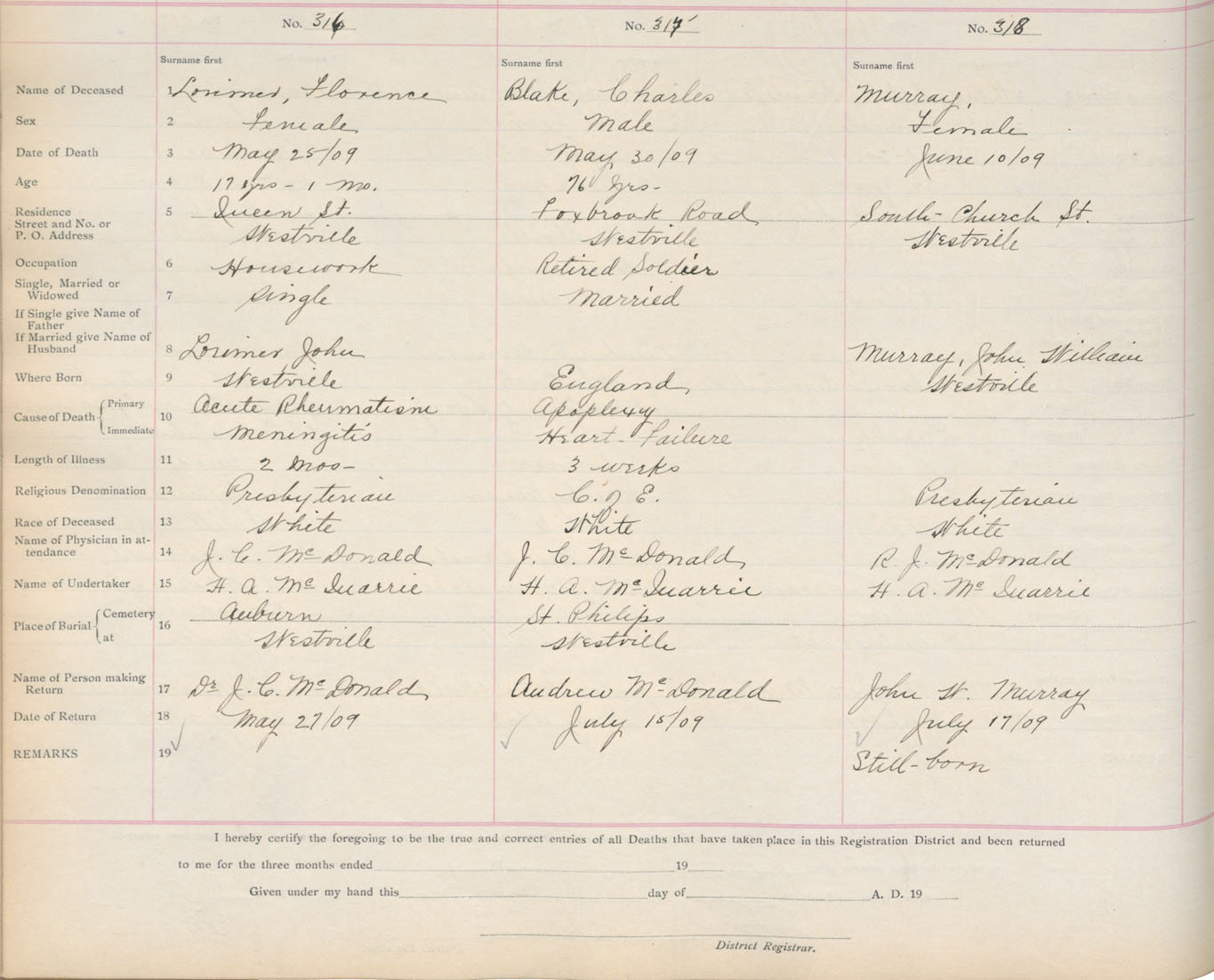 Death Registration: Year: 1909 book: 14 page: 53 number: 318