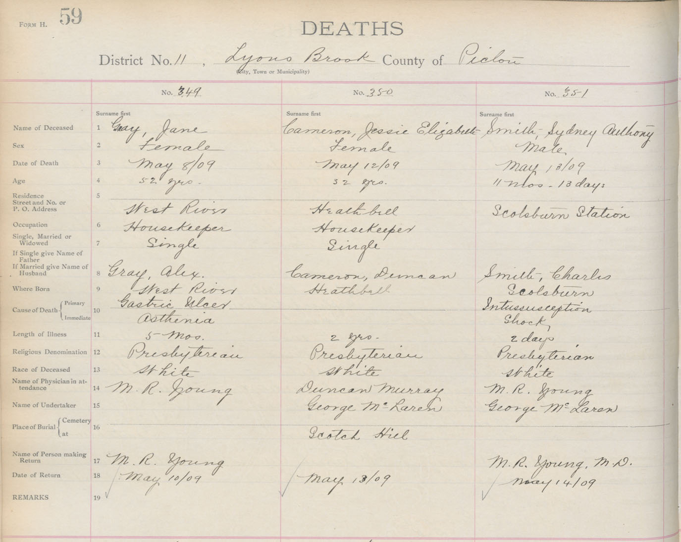 Death Registration: Year: 1909 book: 14 page: 59 number: 351