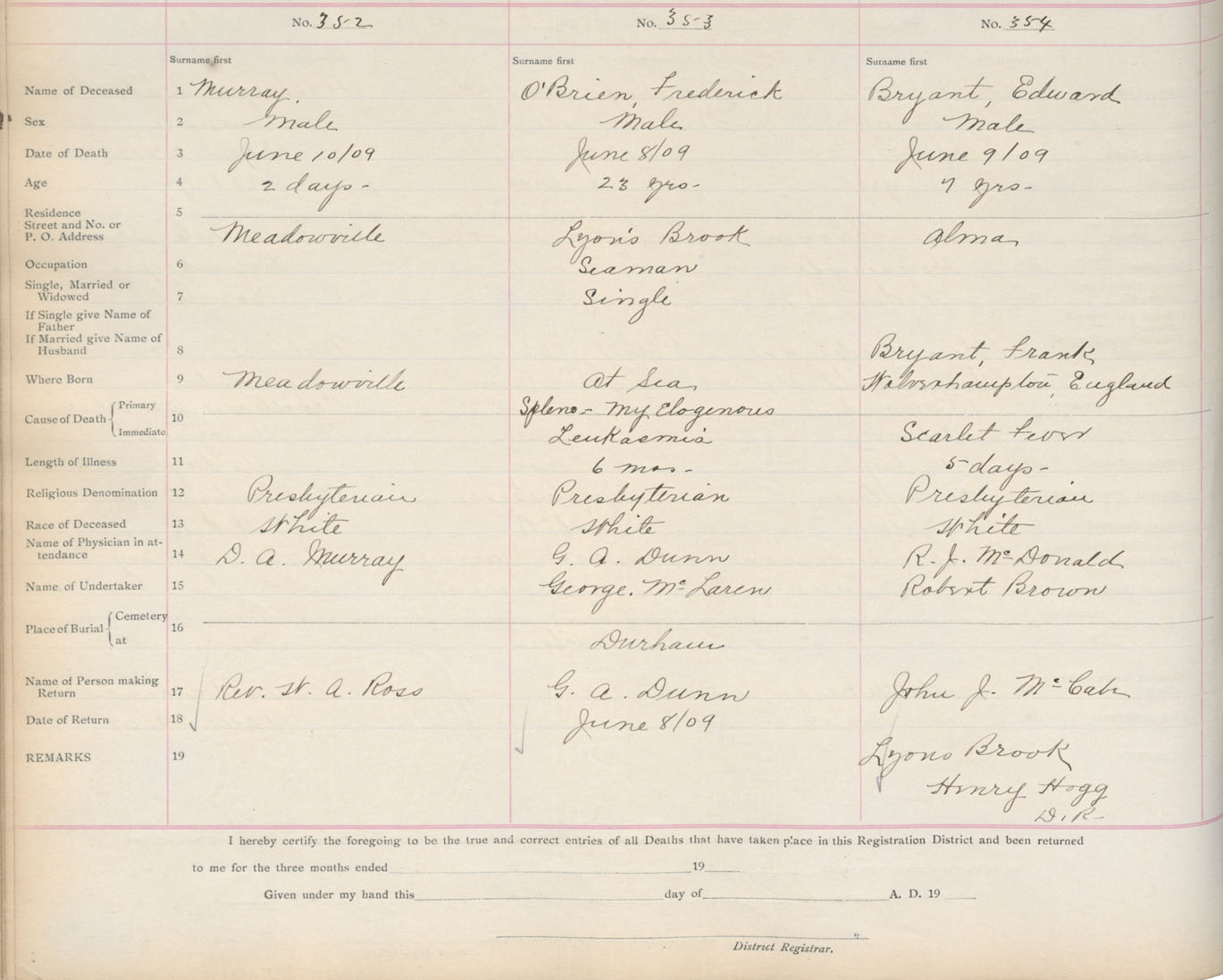 Death Registration: Year: 1909 book: 14 page: 59 number: 354