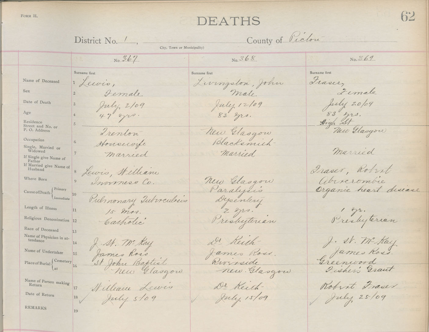 Death Registration: Year: 1909 book: 14 page: 62 number: 369