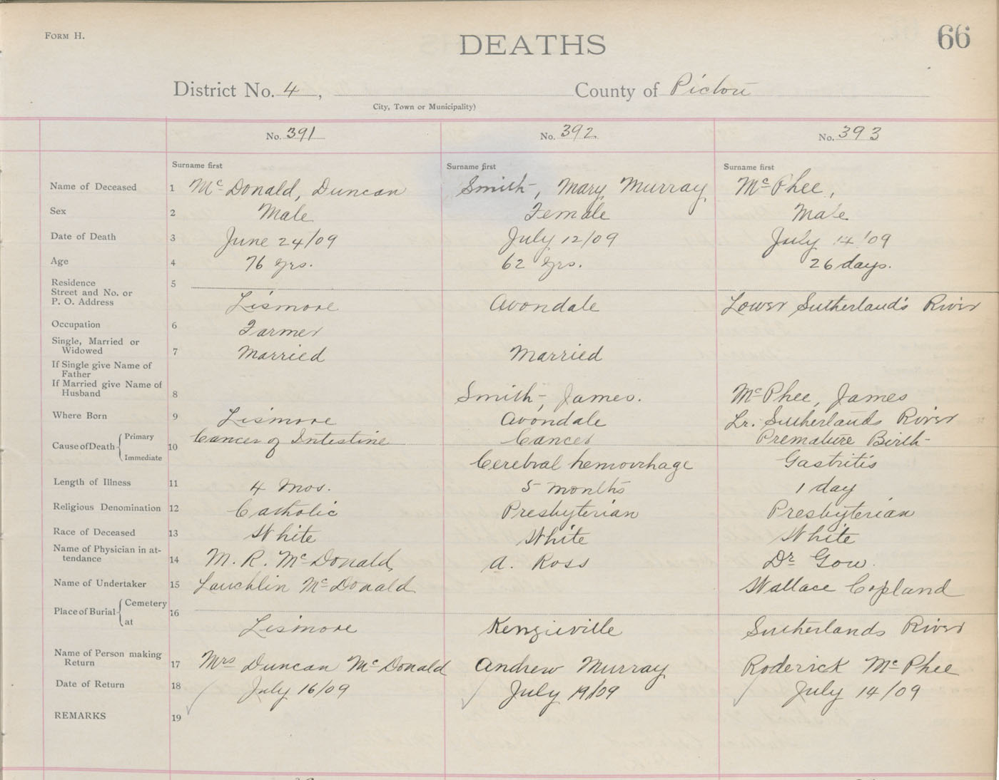 Death Registration: Year: 1909 book: 14 page: 66 number: 393