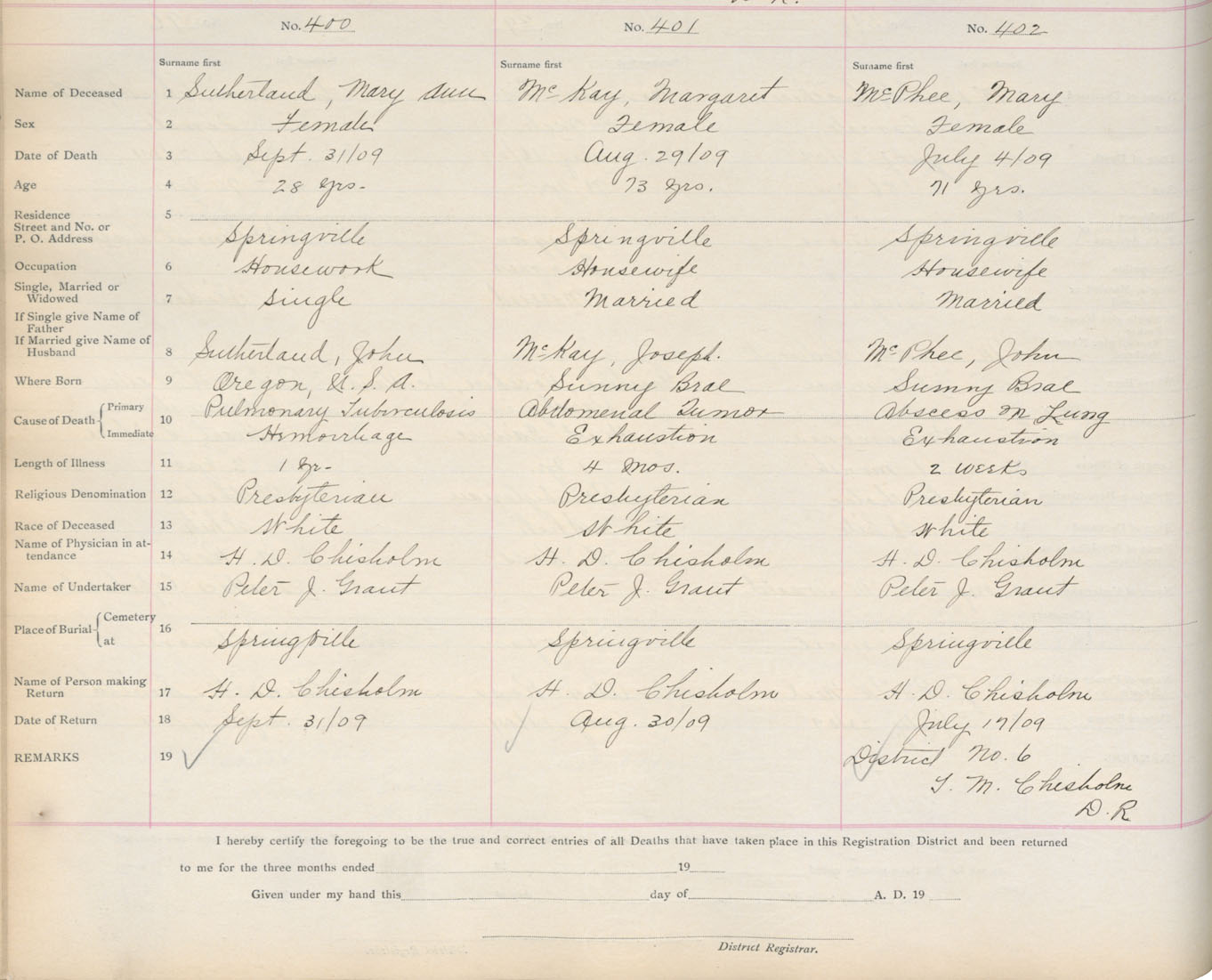 Death Registration: Year: 1909 book: 14 page: 67 number: 402