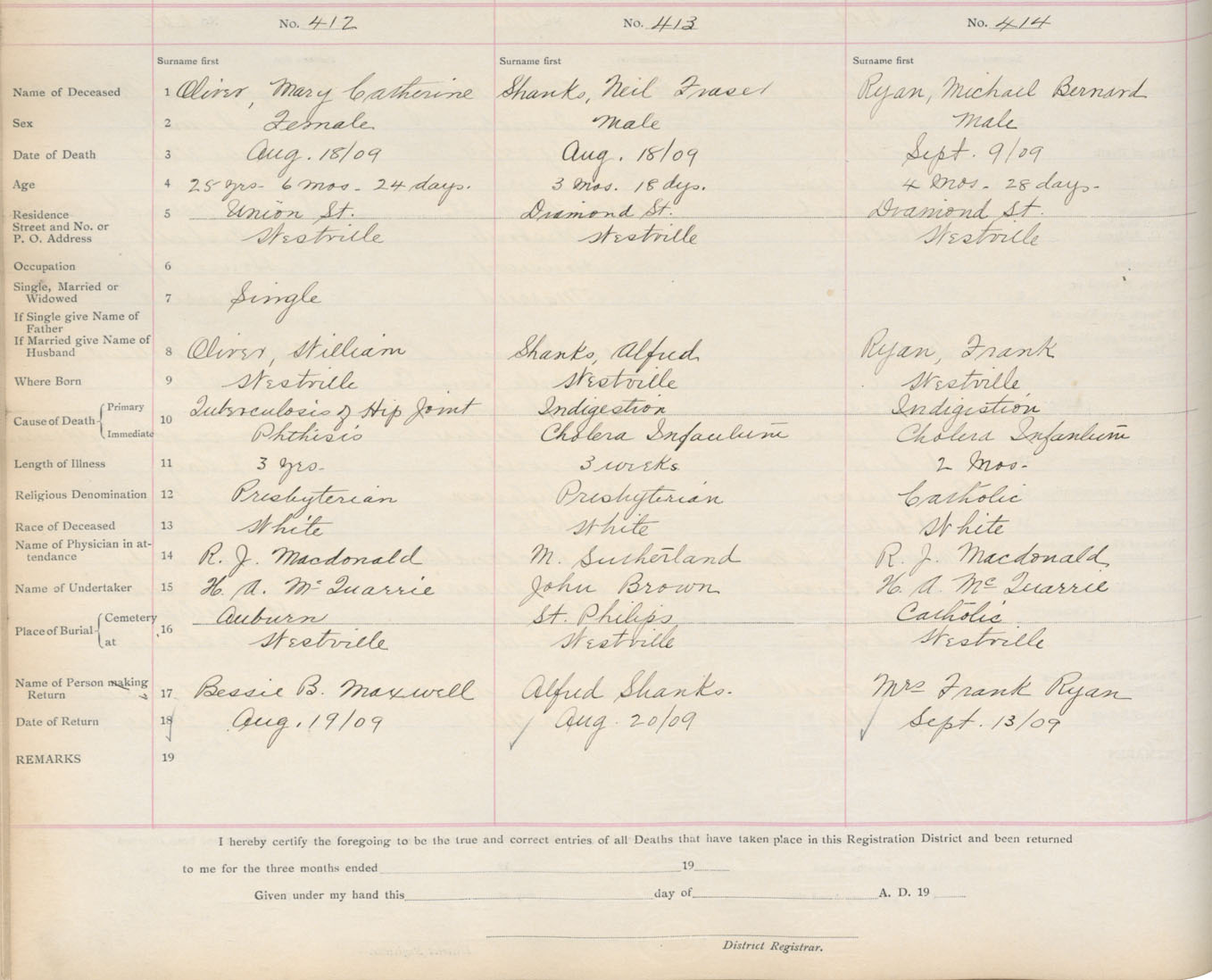 Death Registration: Year: 1909 book: 14 page: 69 number: 414