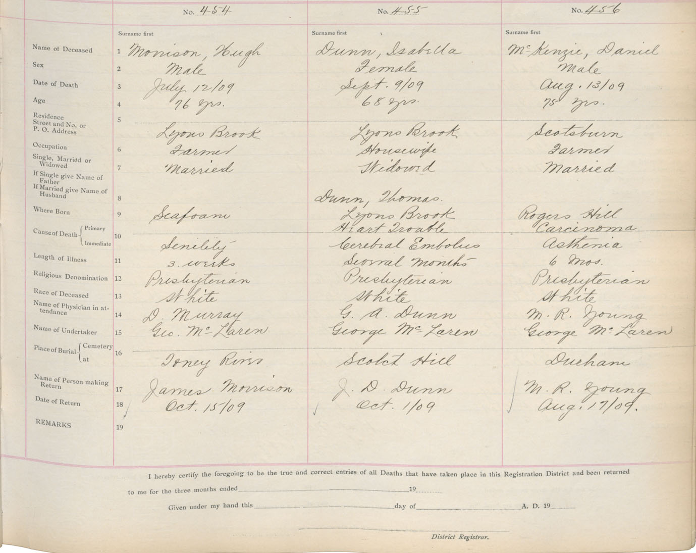 Death Registration: Year: 1909 book: 14 page: 76 number: 454
