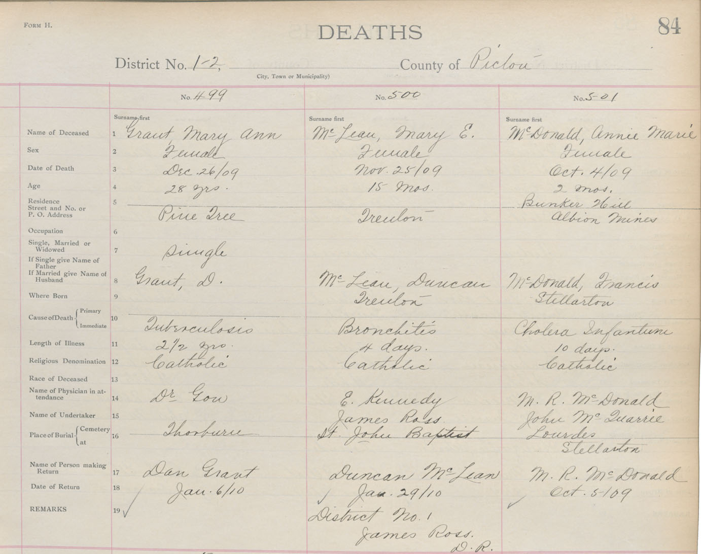 Death Registration: Year: 1909 book: 14 page: 84 number: 501