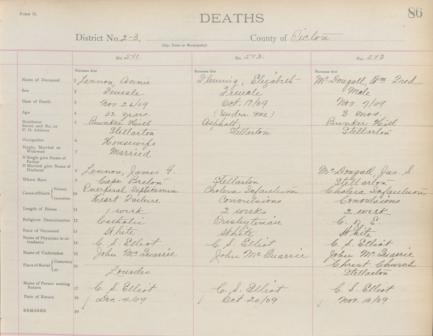 Death Registration: Year: 1909 book: 14 page: 86 number: 513