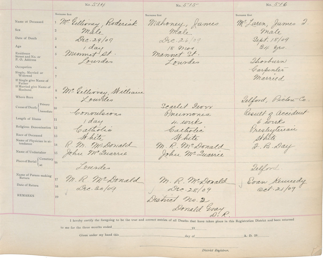 Death Registration: Year: 1909 book: 14 page: 86 number: 516