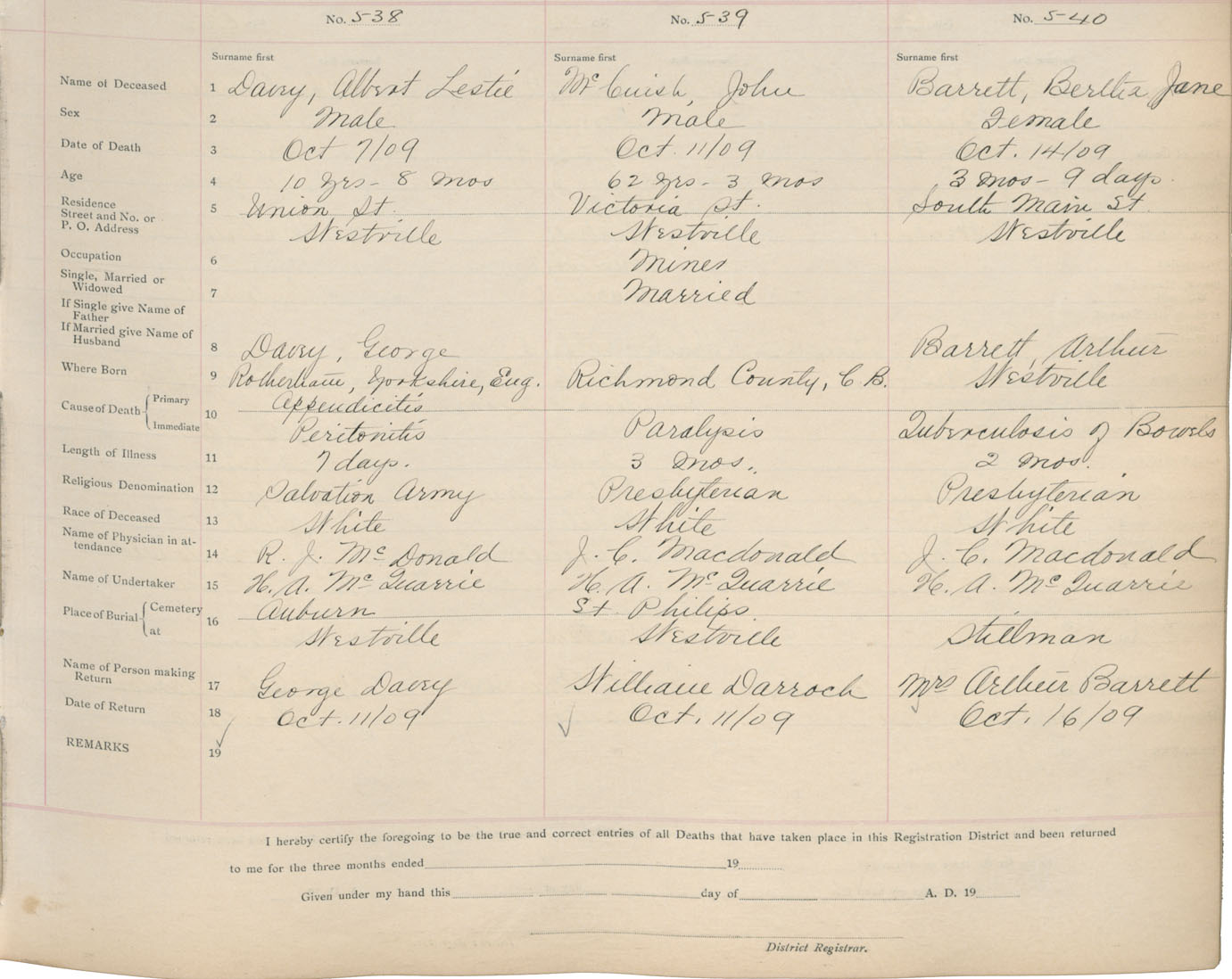 Death Registration: Year: 1909 book: 14 page: 90 number: 540