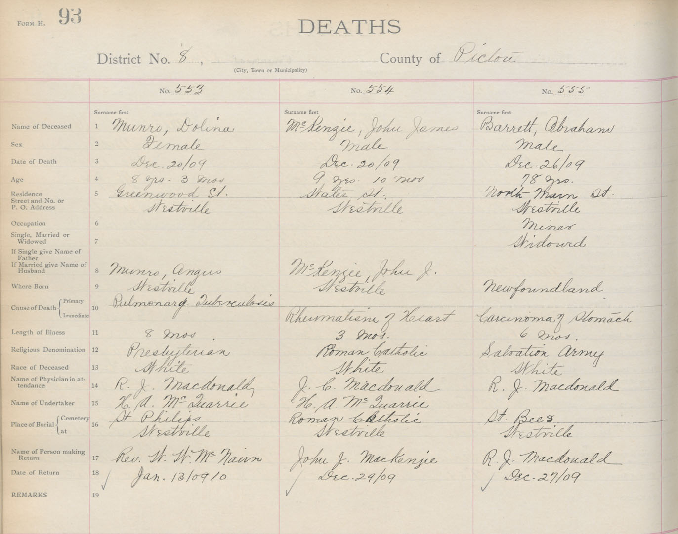 Death Registration: Year: 1909 book: 14 page: 93 number: 553