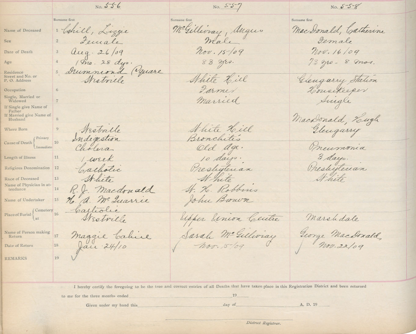 Death Registration: Year: 1909 book: 14 page: 93 number: 556