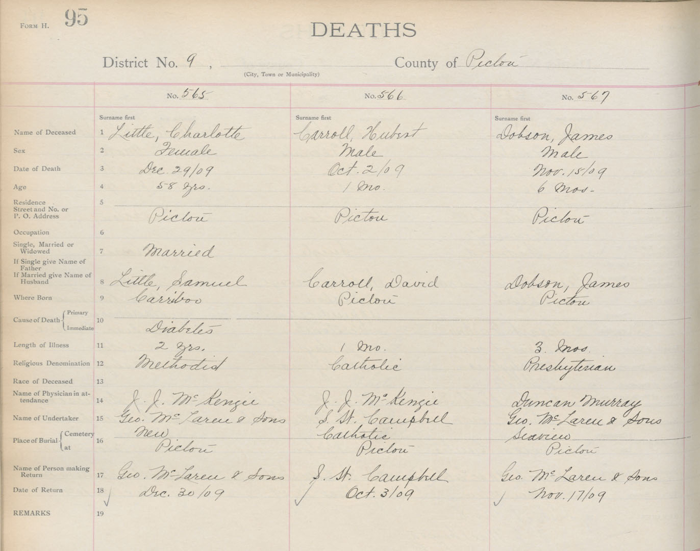Death Registration: Year: 1909 book: 14 page: 95 number: 565