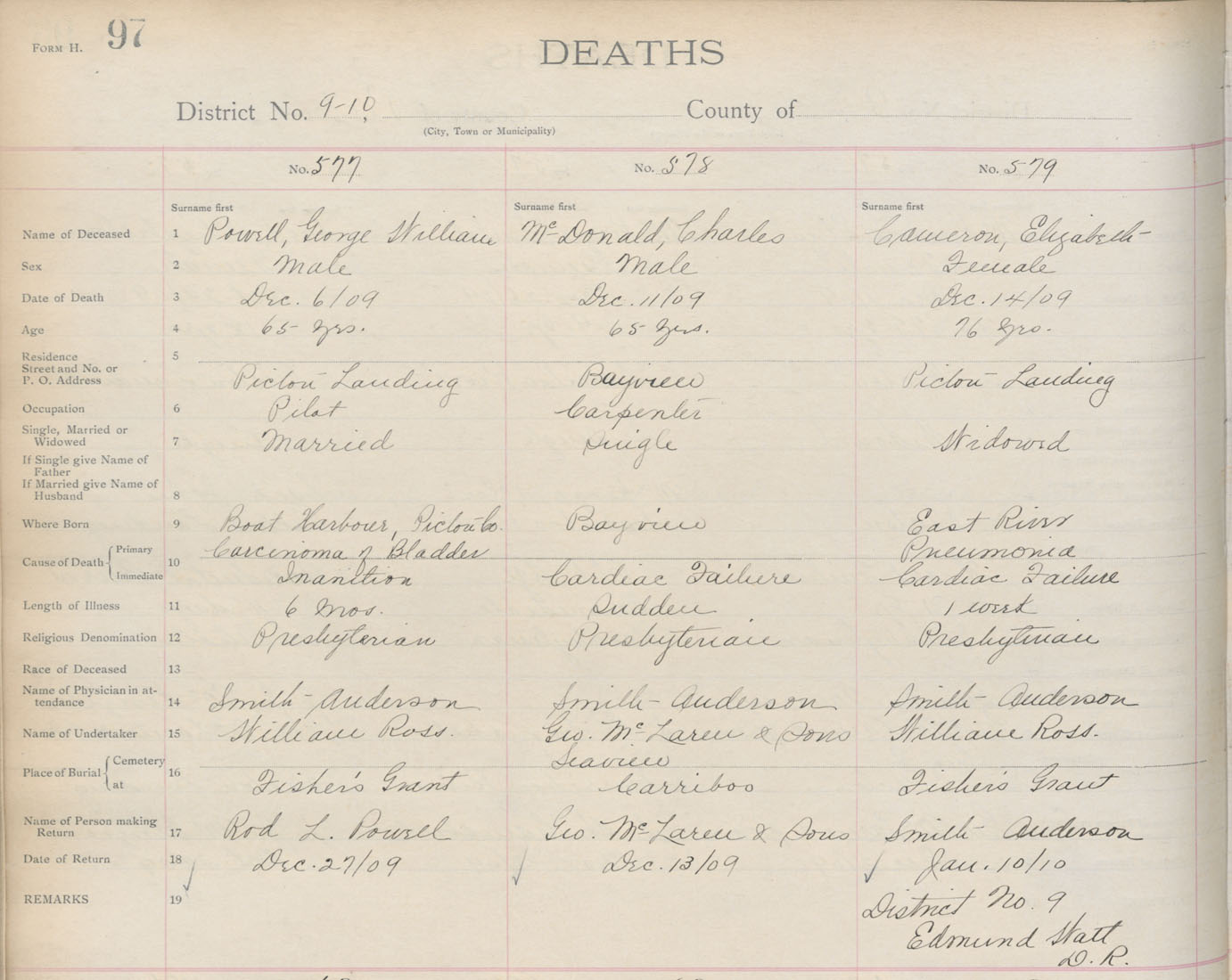 Death Registration: Year: 1909 book: 14 page: 97 number: 577