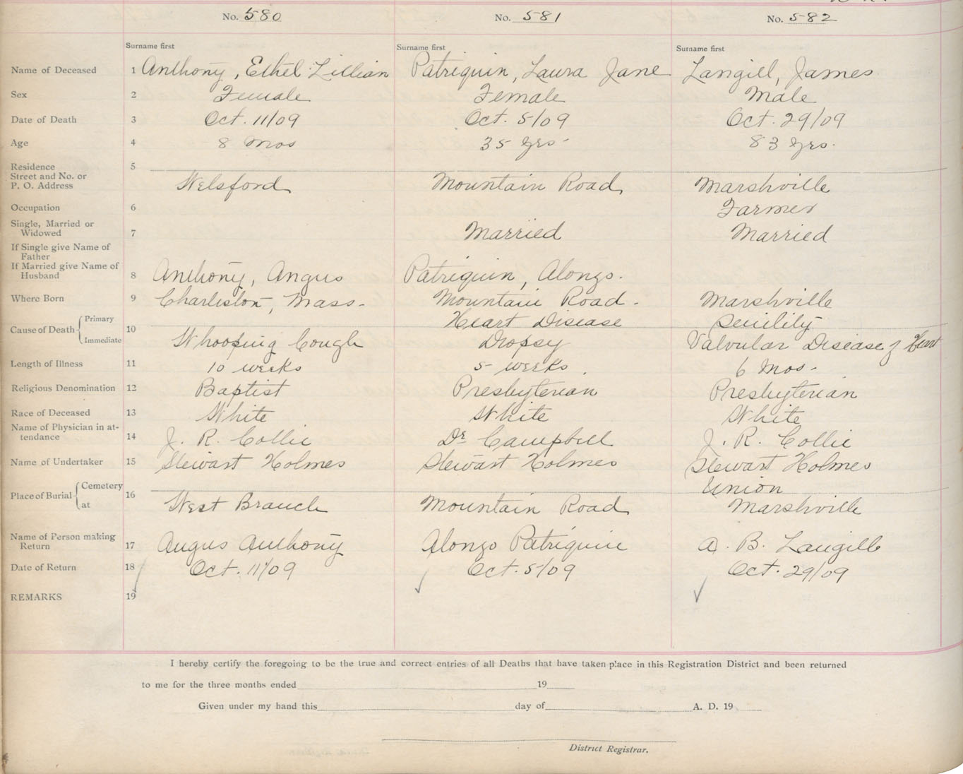 Death Registration: Year: 1909 book: 14 page: 97 number: 580