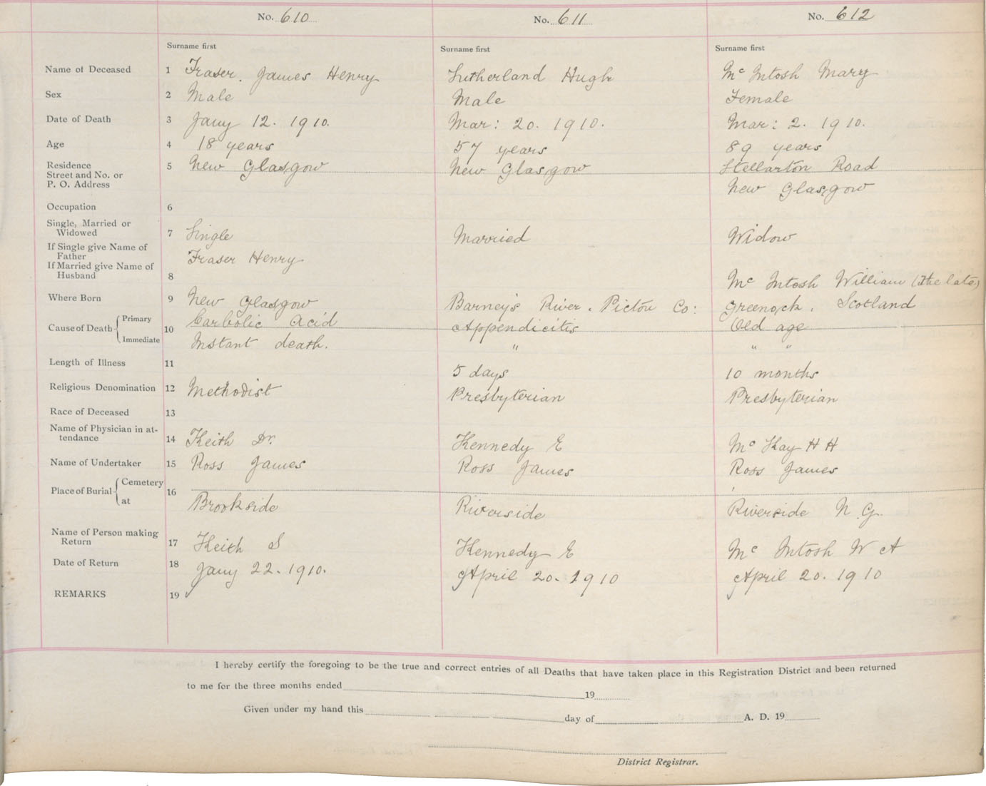 Death Registration: Year: 1909 book: 14 page: 102 number: 610