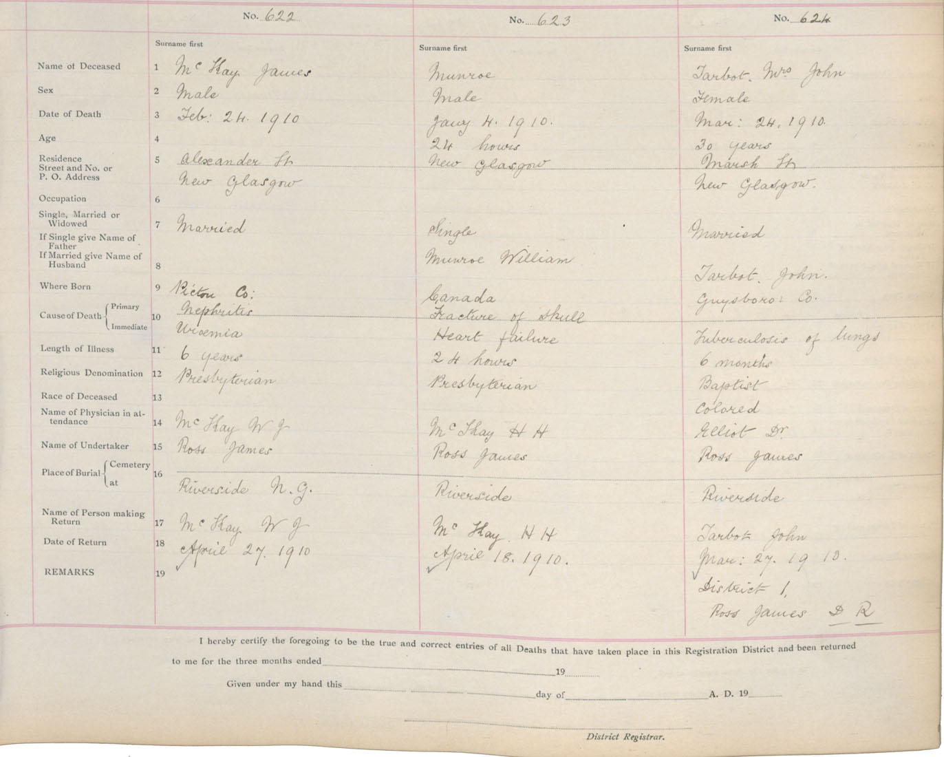 Death Registration: Year: 1910 book: 14 page: 104 number: 622
