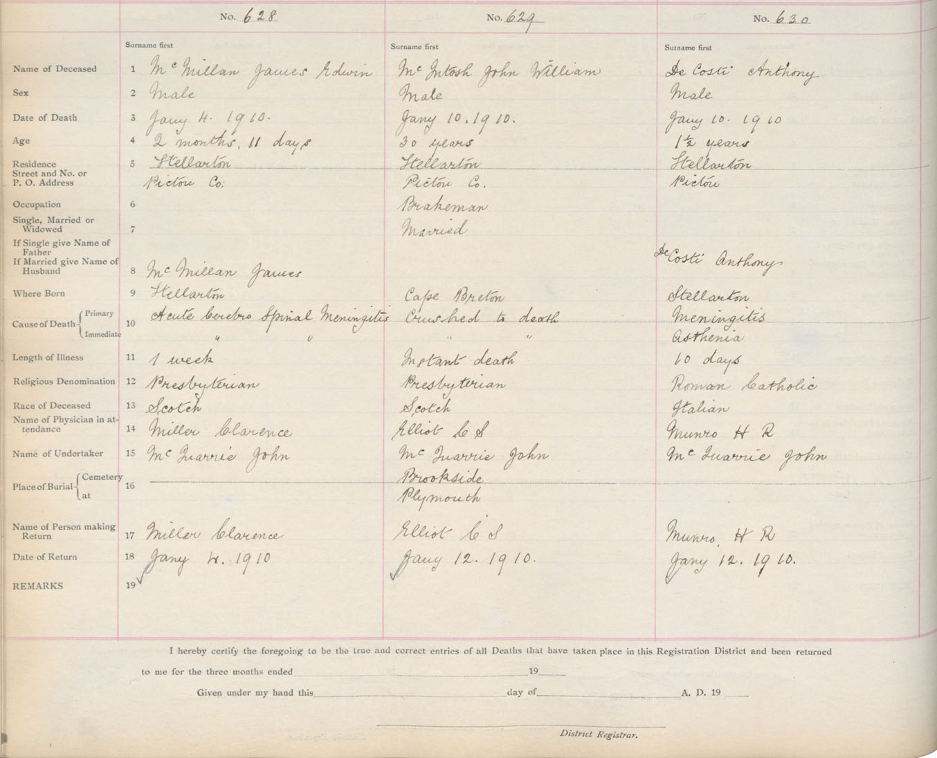 Death Registration: Year: 1910 book: 14 page: 105 number: 628