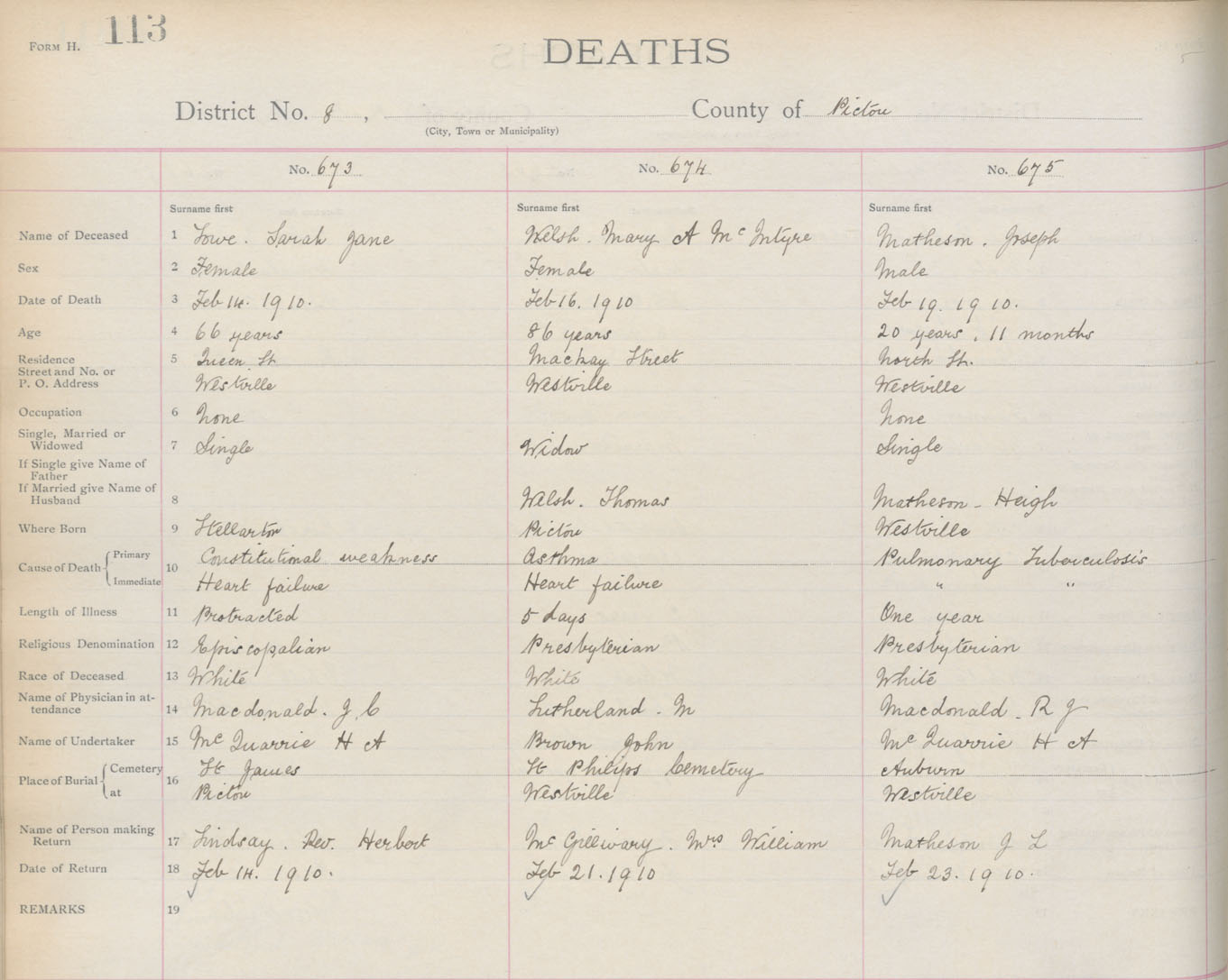 Death Registration: Year: 1910 book: 14 page: 113 number: 673