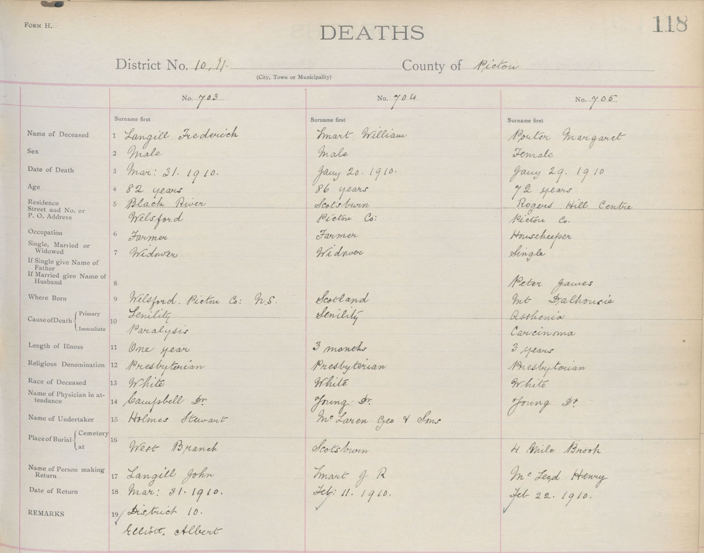 Death Registration: Year: 1910 book: 14 page: 118 number: 703