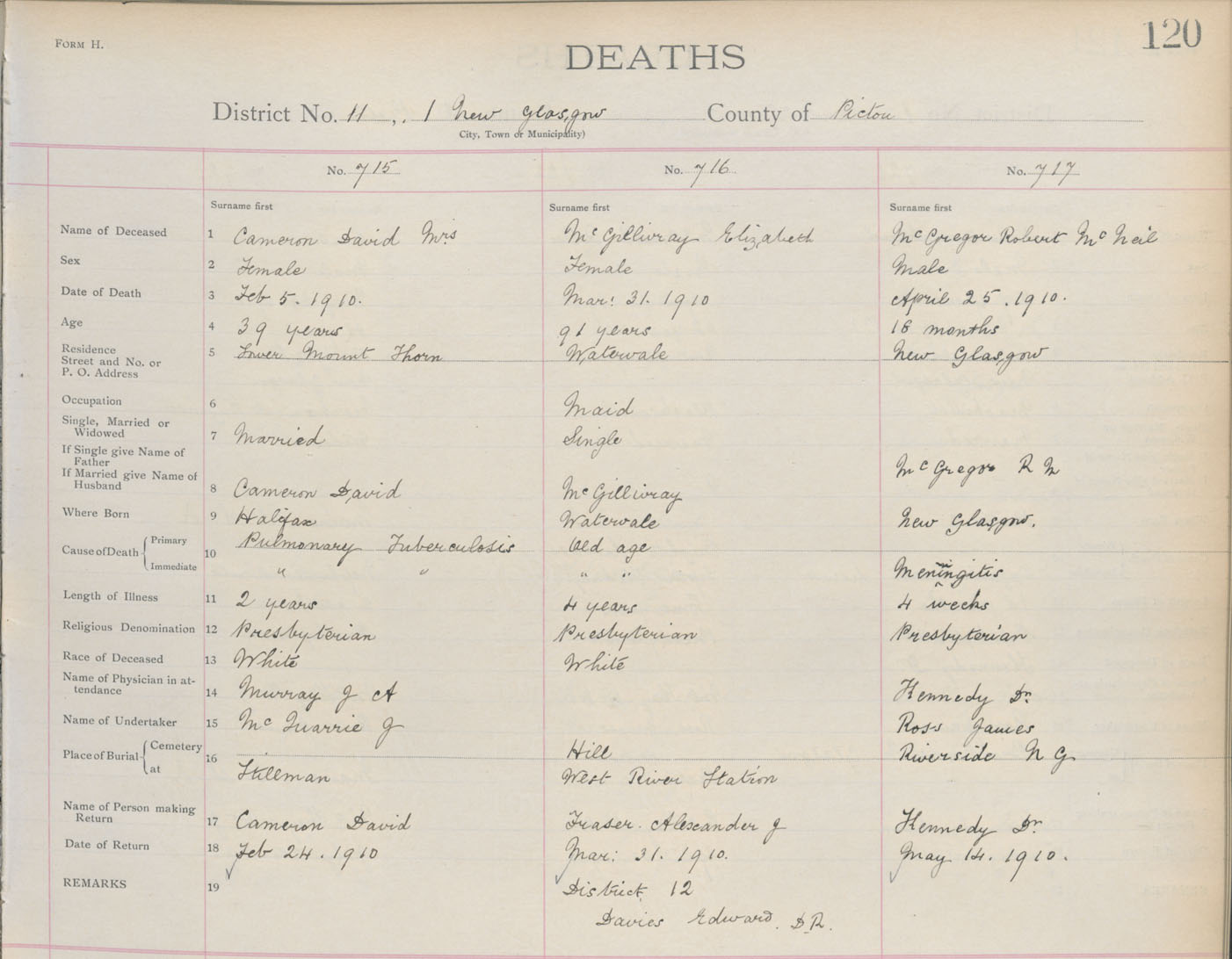 Death Registration: Year: 1910 book: 14 page: 120 number: 715