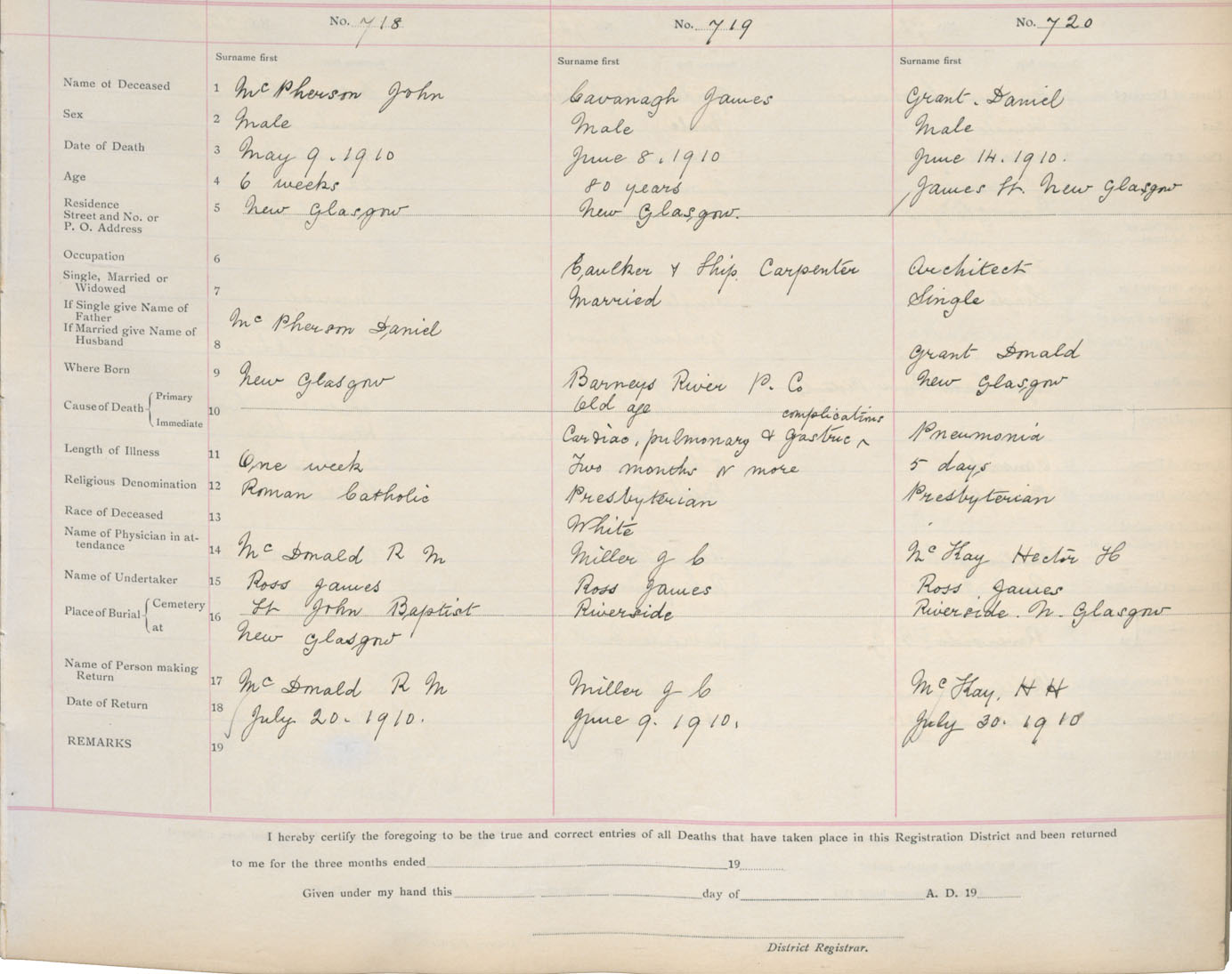 Death Registration: Year: 1910 book: 14 page: 120 number: 718