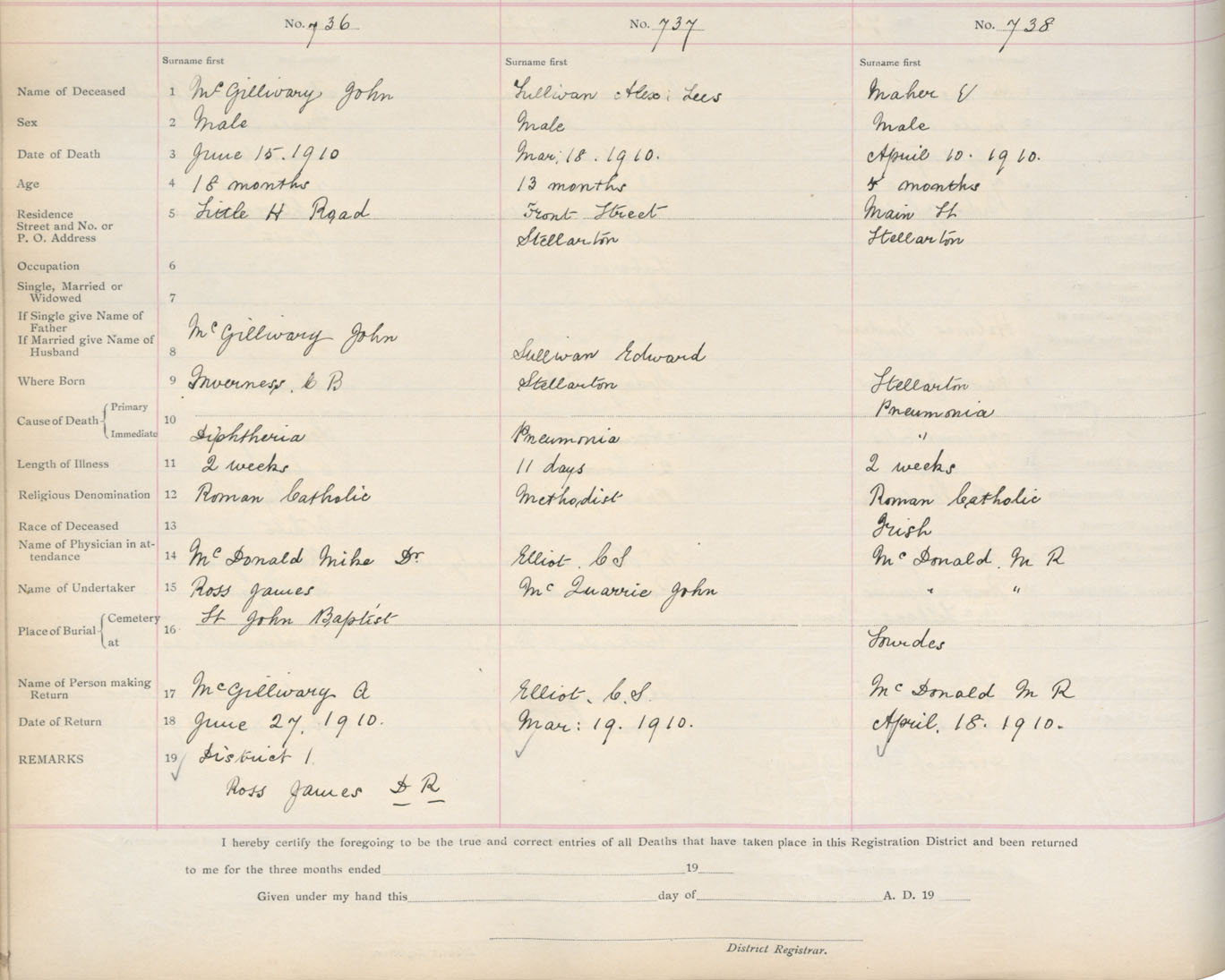 Death Registration: Year: 1910 book: 14 page: 123 number: 736