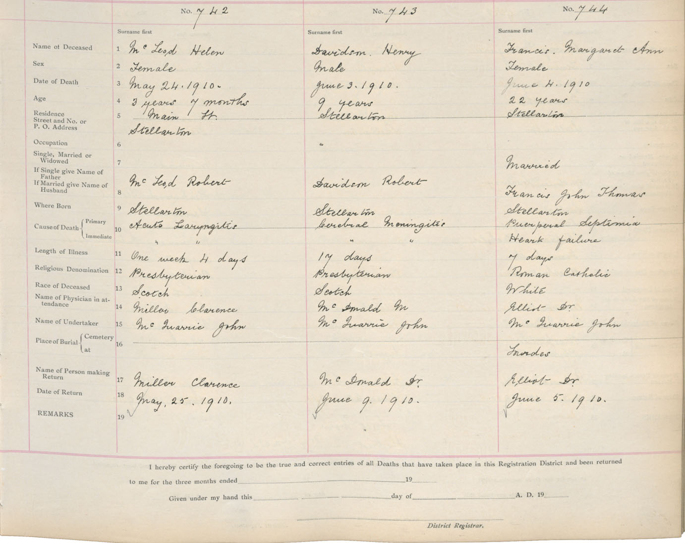 Death Registration: Year: 1910 book: 14 page: 124 number: 742