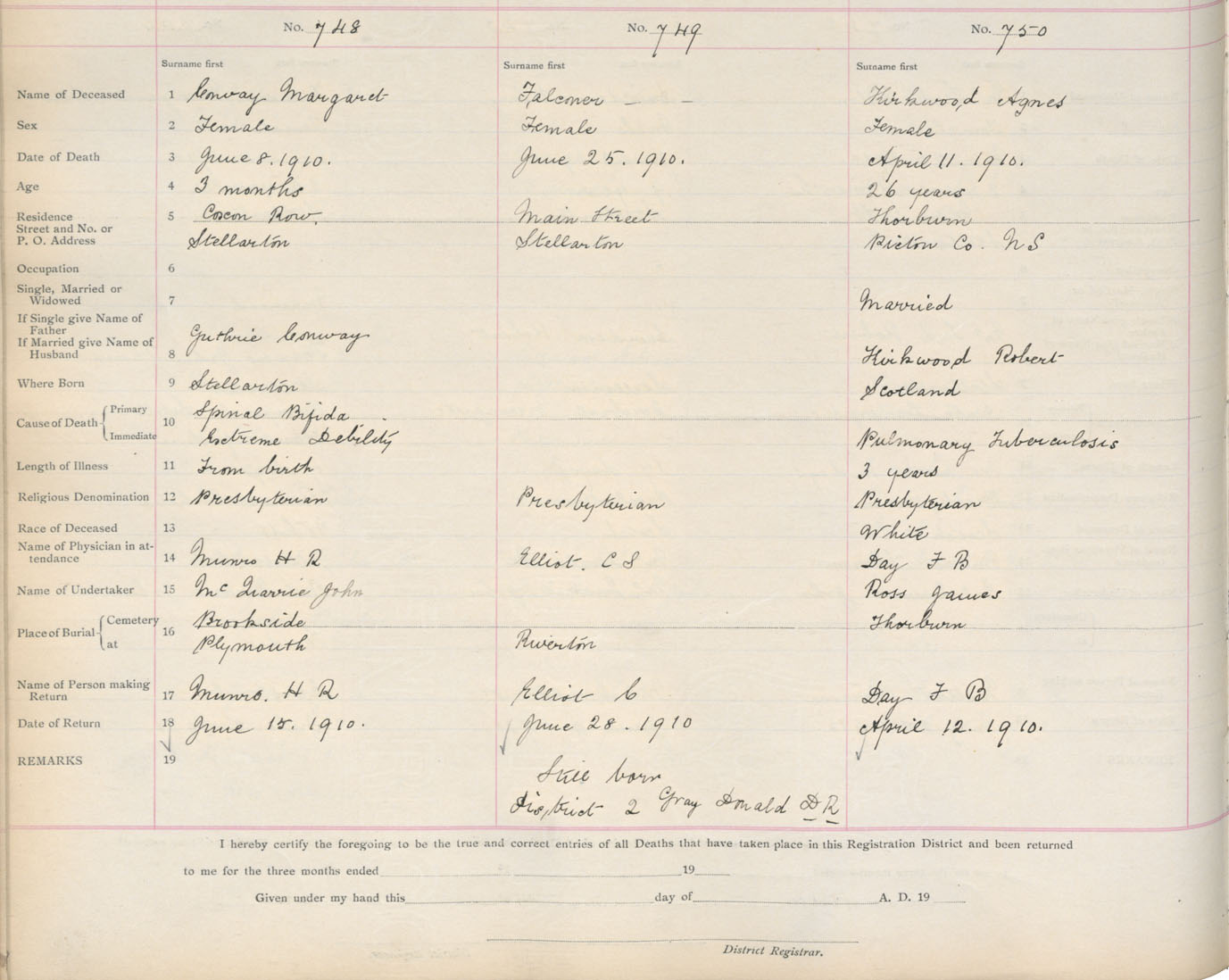 Death Registration: Year: 1910 book: 14 page: 125 number: 748