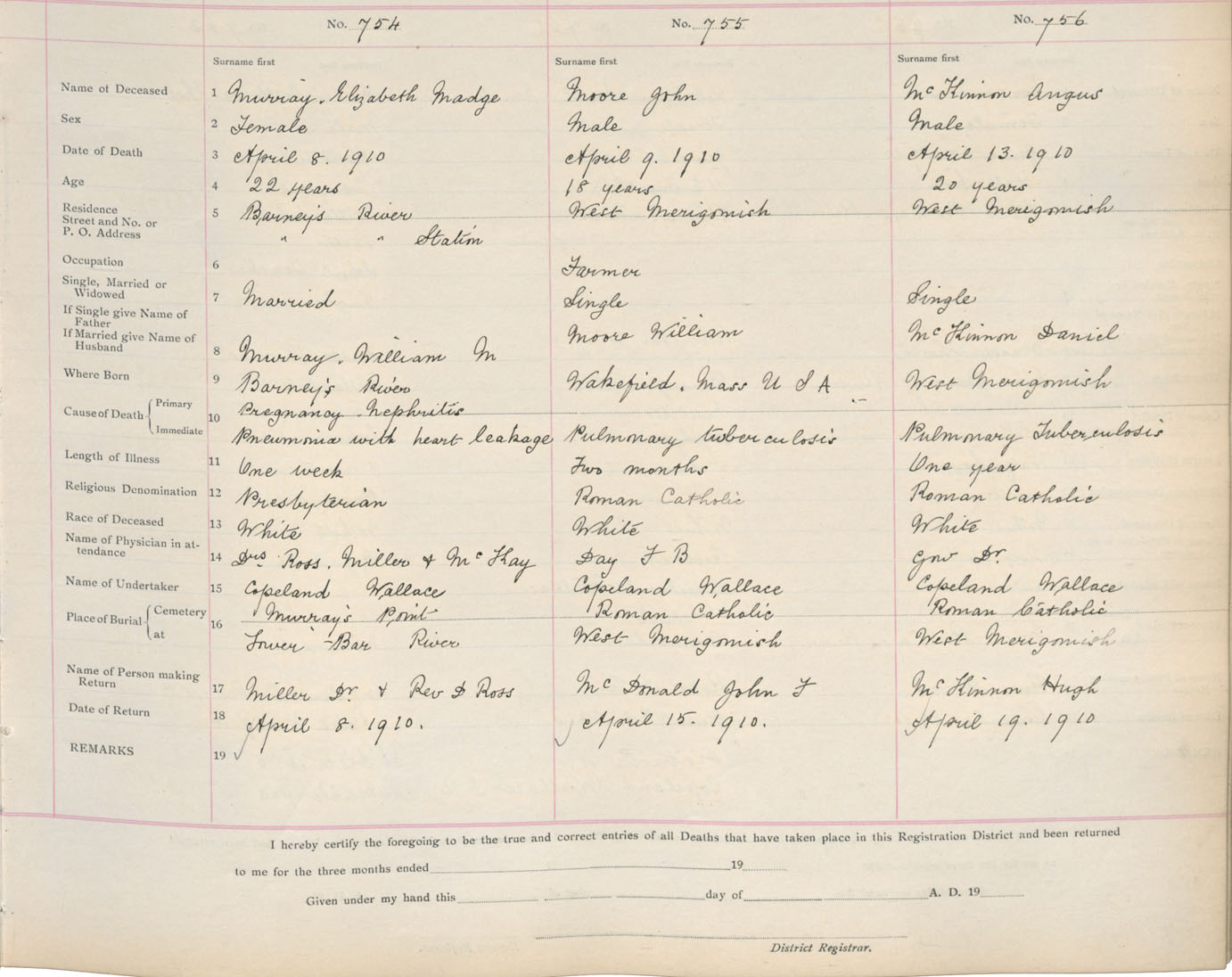 Death Registration: Year: 1910 book: 14 page: 126 number: 754