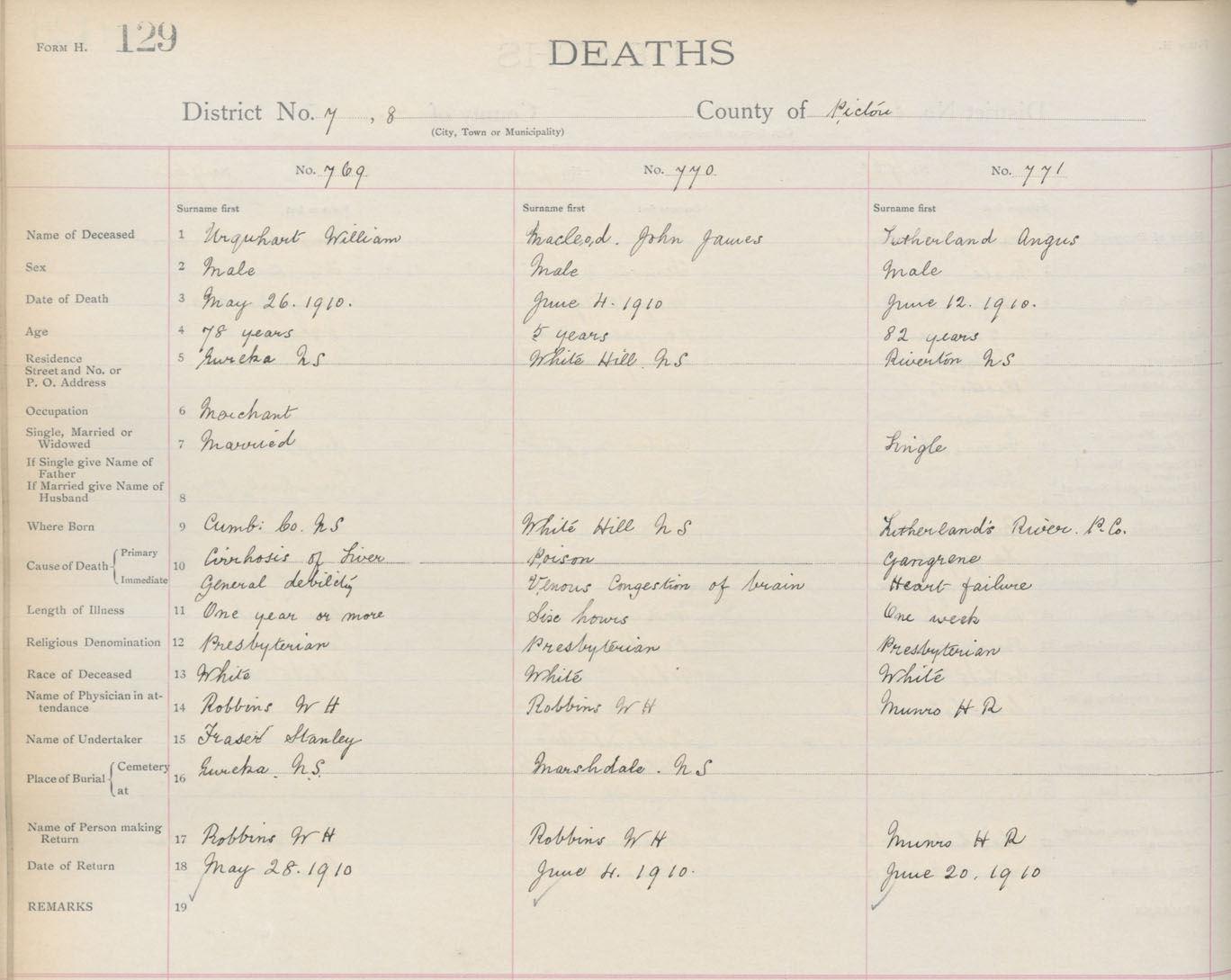 Death Registration: Year: 1910 book: 14 page: 129 number: 769