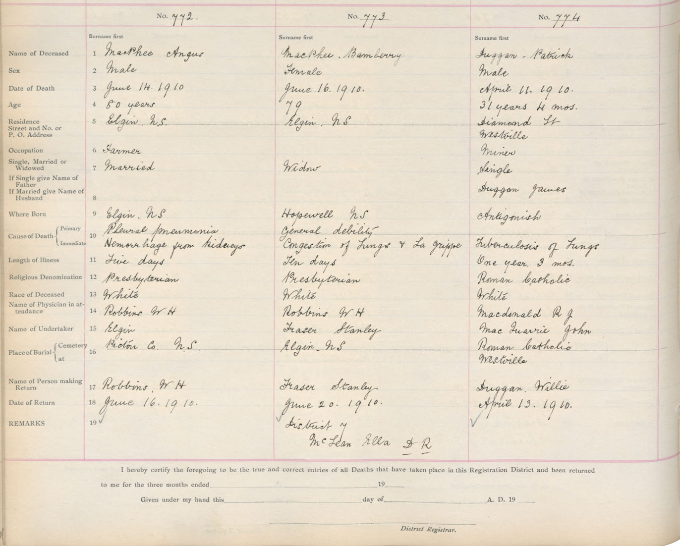 Death Registration: Year: 1910 book: 14 page: 129 number: 772