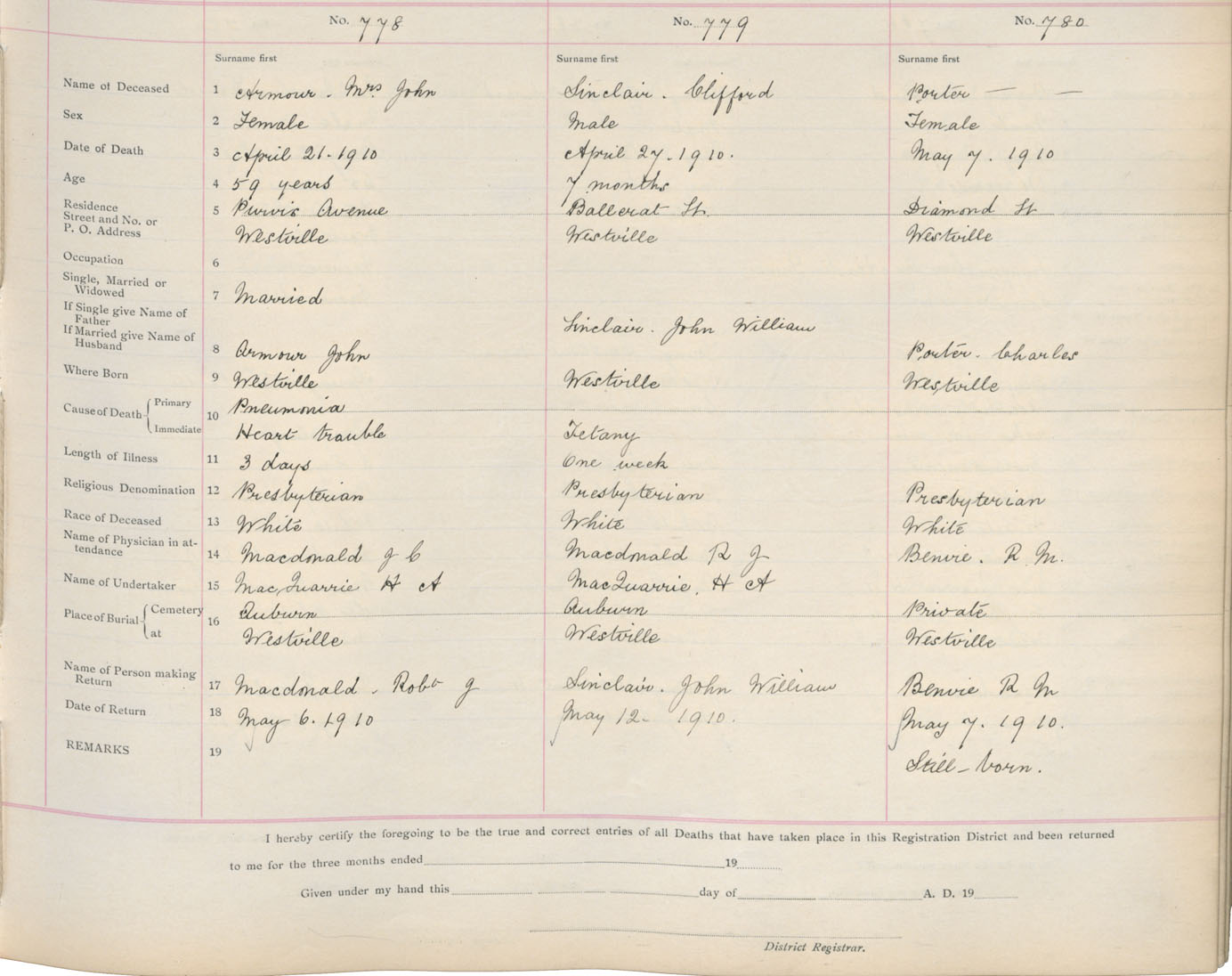 Death Registration: Year: 1910 book: 14 page: 130 number: 778
