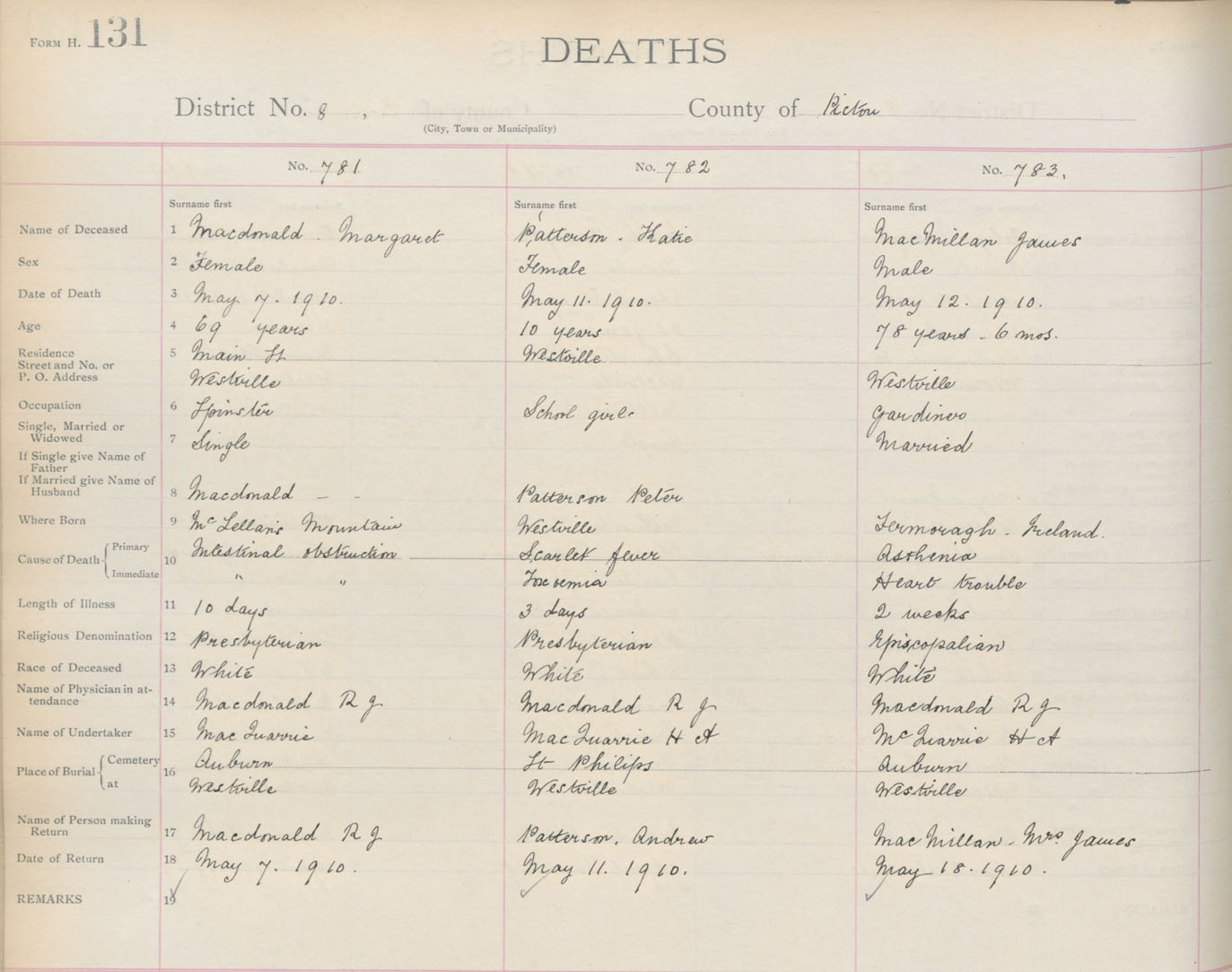 Death Registration: Year: 1910 book: 14 page: 131 number: 781