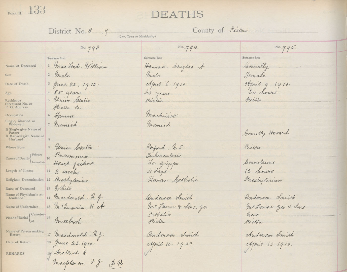 Death Registration: Year: 1910 book: 14 page: 133 number: 793