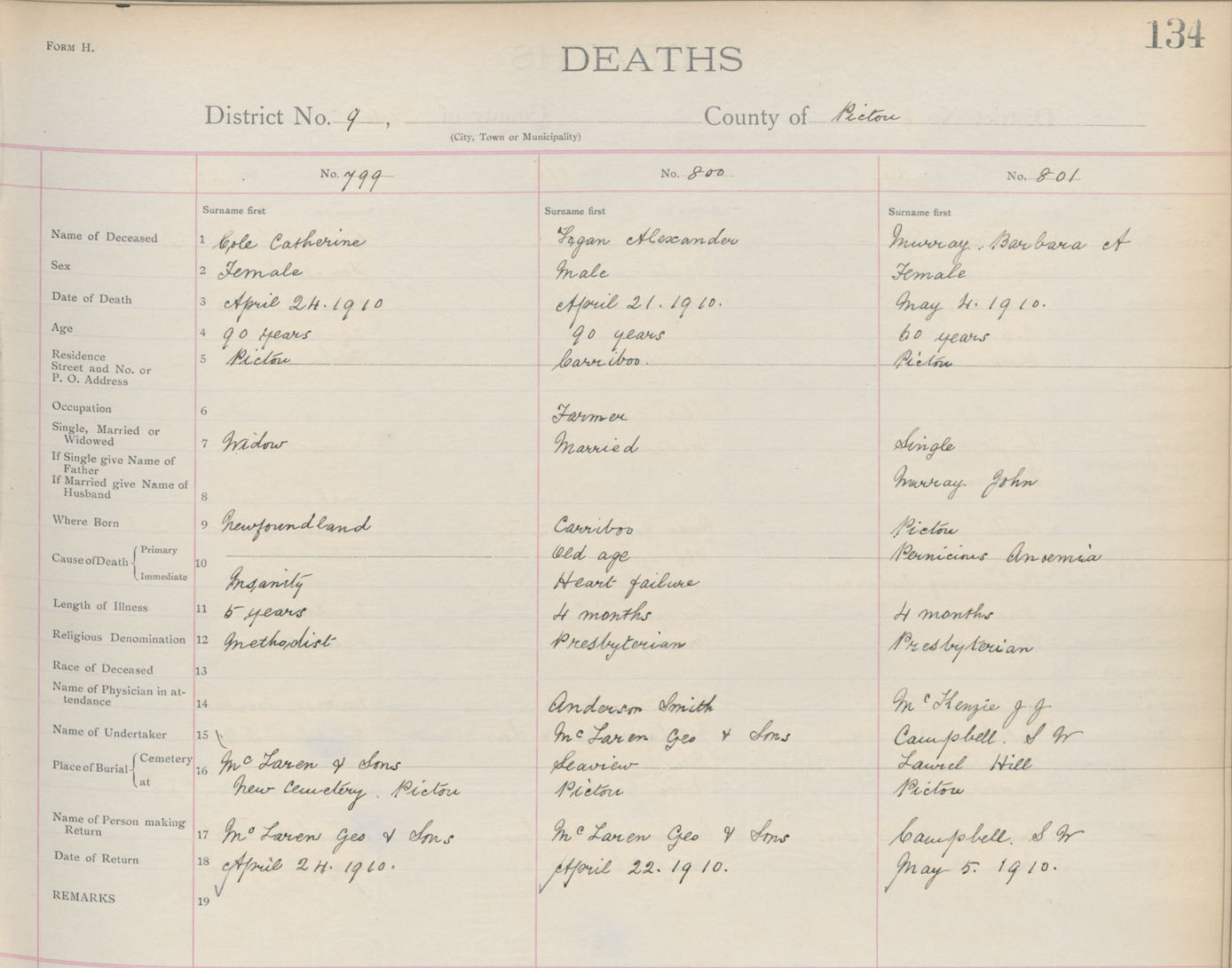 Death Registration: Year: 1910 book: 14 page: 134 number: 799