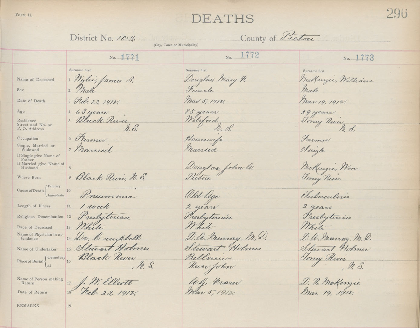 Death Registration: Year: 1912 book: 14 page: 296 number: 1773