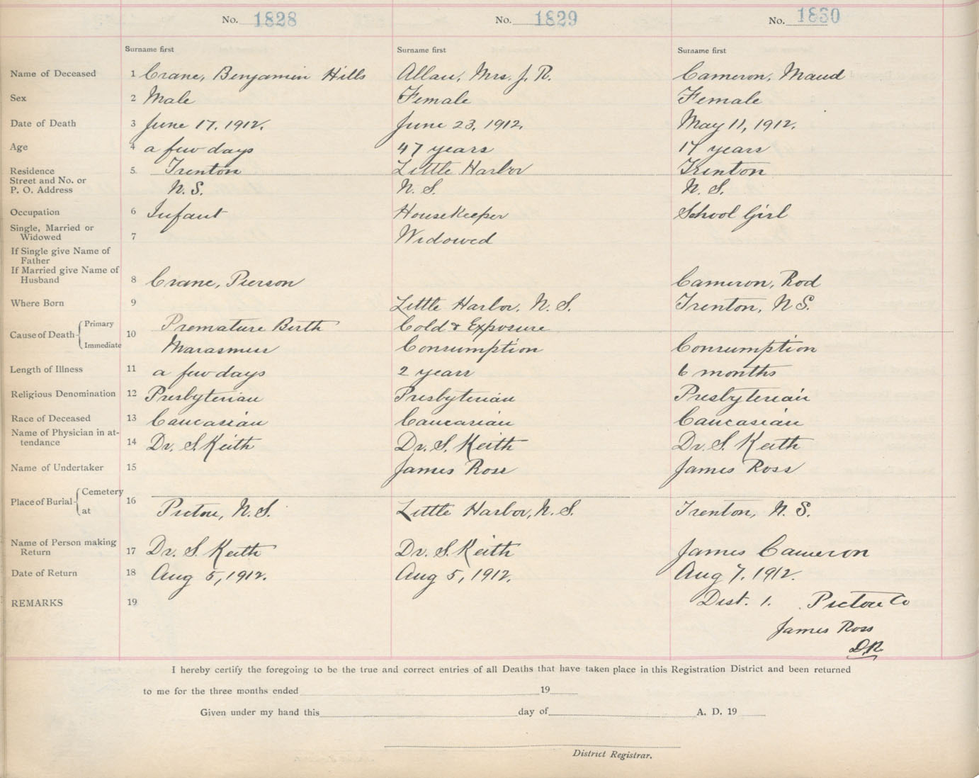 Death Registration: Year: 1912 book: 14 page: 305 number: 1830