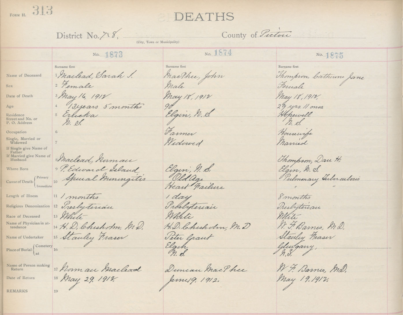 Death Registration: Year: 1912 book: 14 page: 313 number: 1875