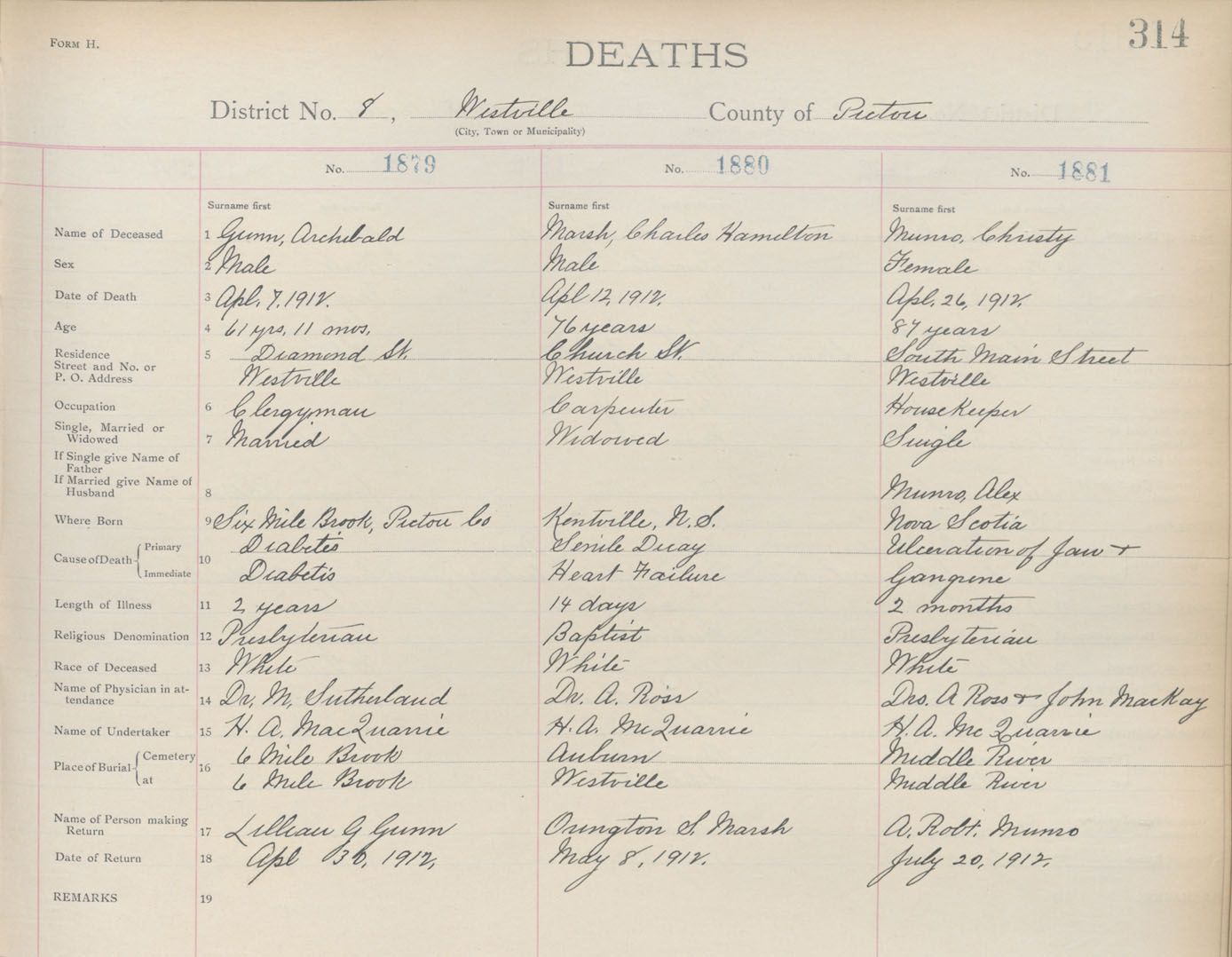 Death Registration: Year: 1912 book: 14 page: 314 number: 1881