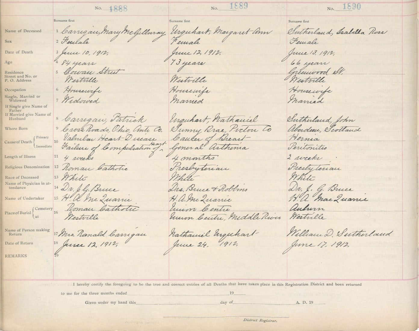 Death Registration: Year: 1912 book: 14 page: 315 number: 1890