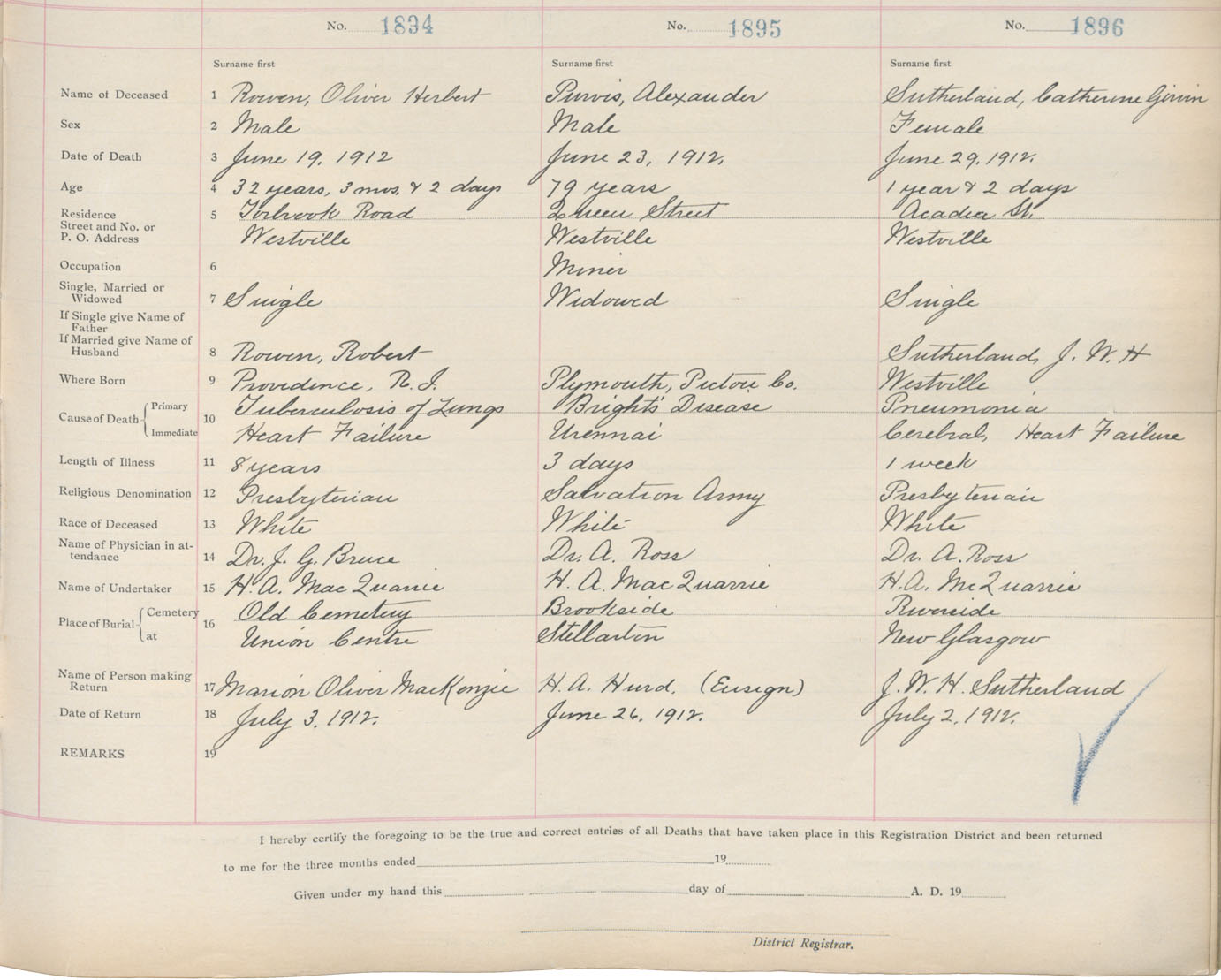 Death Registration: Year: 1912 book: 14 page: 316 number: 1896