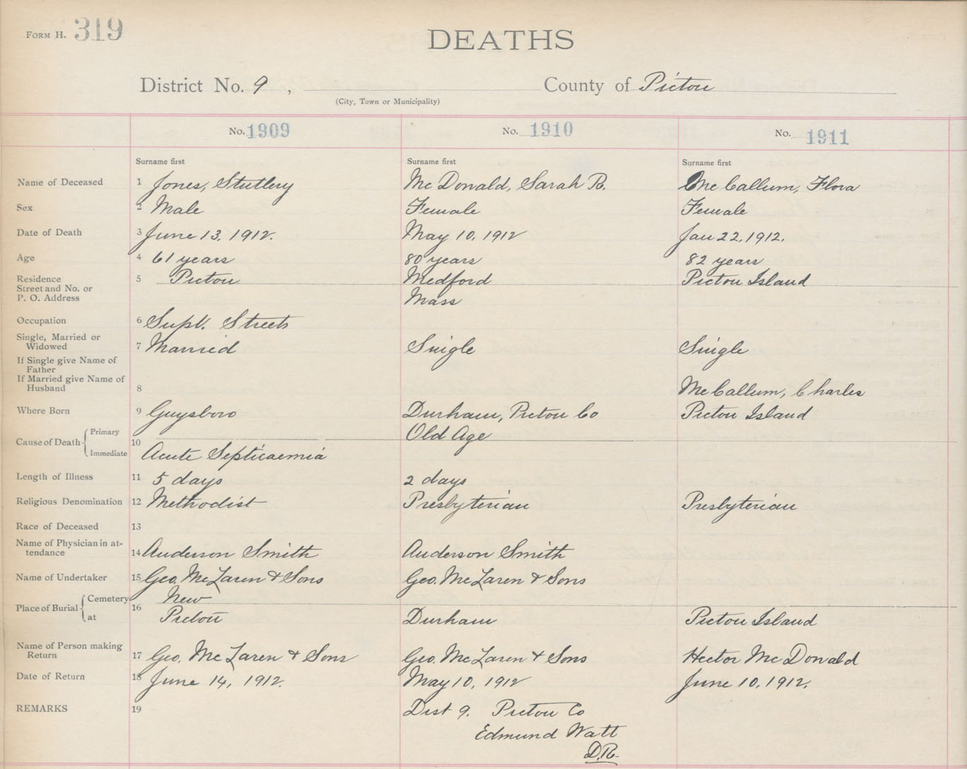 Death Registration: Year: 1912 book: 14 page: 319 number: 1911