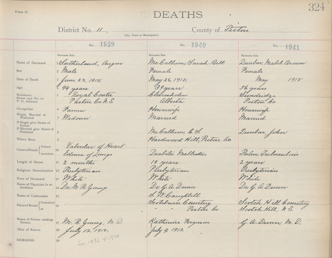 Death Registration: Year: 1912 book: 14 page: 324 number: 1941