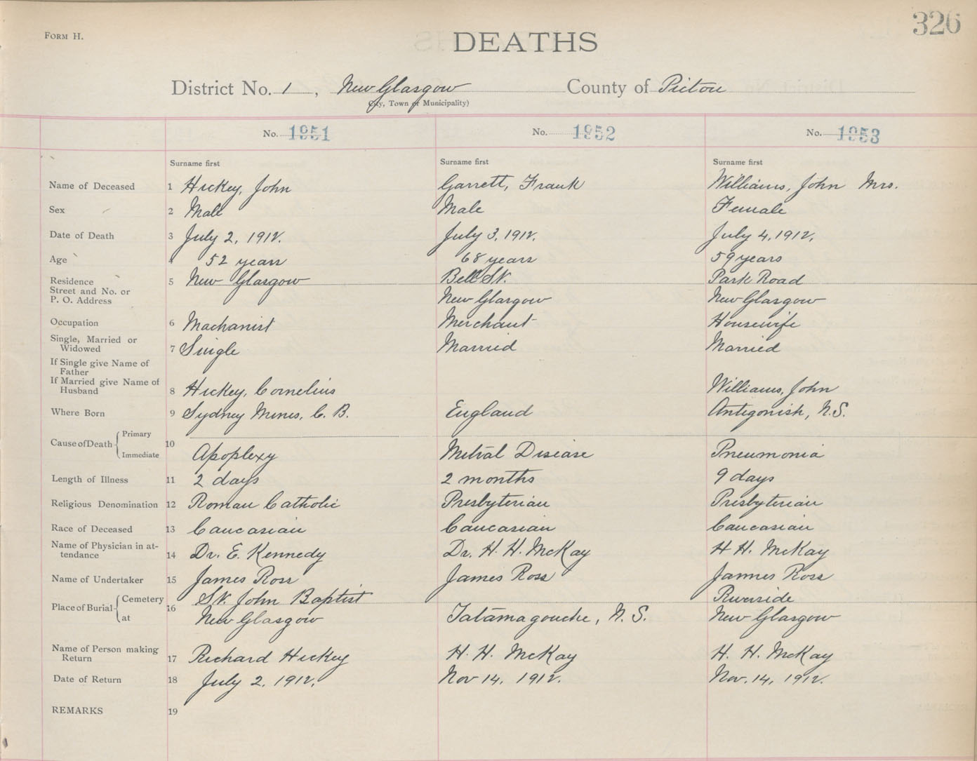 Death Registration: Year: 1912 book: 14 page: 326 number: 1953