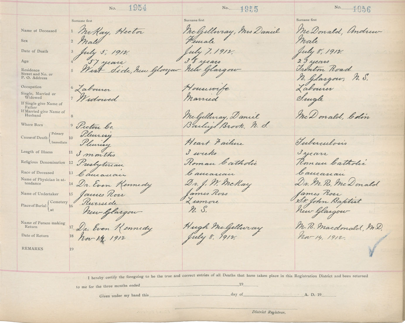 Death Registration: Year: 1912 book: 14 page: 326 number: 1956