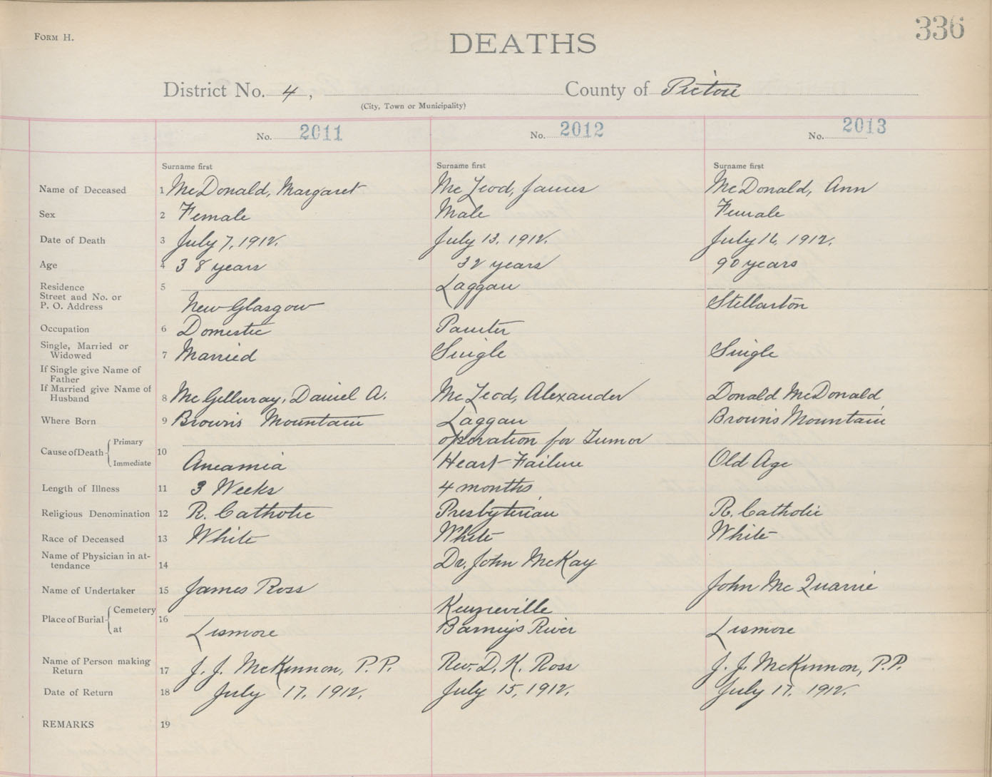 Death Registration: Year: 1912 book: 14 page: 336 number: 2013